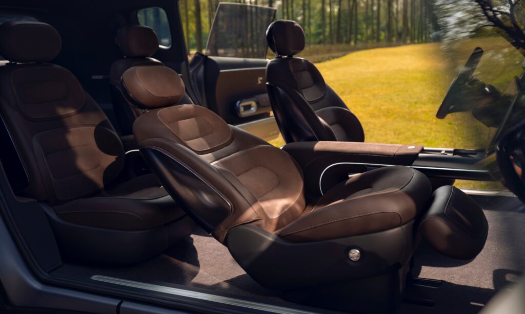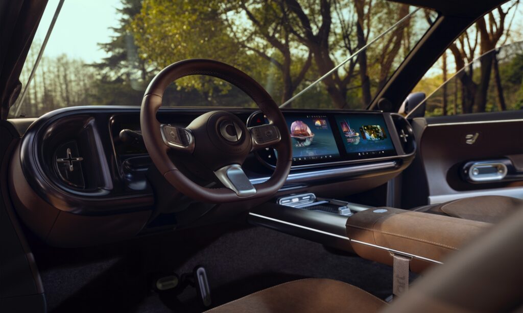 Minden eddiginél nagyobb és tágasabb a Smart Concept #5, melynek szekrényajtói mögött barna kárpittal borított utastér van, egy kisebb kijelzővel és két óriási OLED érintőképernyővel a műszerfalon. Hatalmas üvegteteje van, az utastérbe pedig egymással szemben nyíló ajtókon át lehet bejutni. Azt is könnyű elképzelni, ahogy nyitott ajtókkal egy fa árnyékában pihennek a túrában megfáradt smartosok, közben pedig a fekvő pozícióba döntött üléseken élvezik a masszázst.
