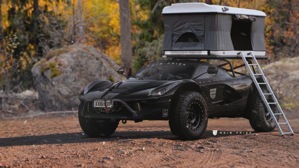 Nem hittük volna, de még a LaFerrari is állati jól néz ki terepjáróként. Itt már az éjszakázás is meg van oldva, mert a tetőcsomagtartóra ugyanolyan kinyitható sátor került, mint amit a MINI Countryman is kapott, vagy mint amilyet régen a Trabantokra is tettek.