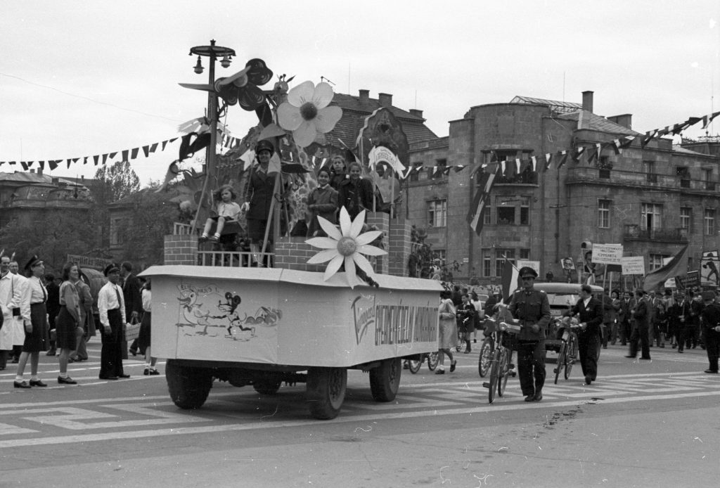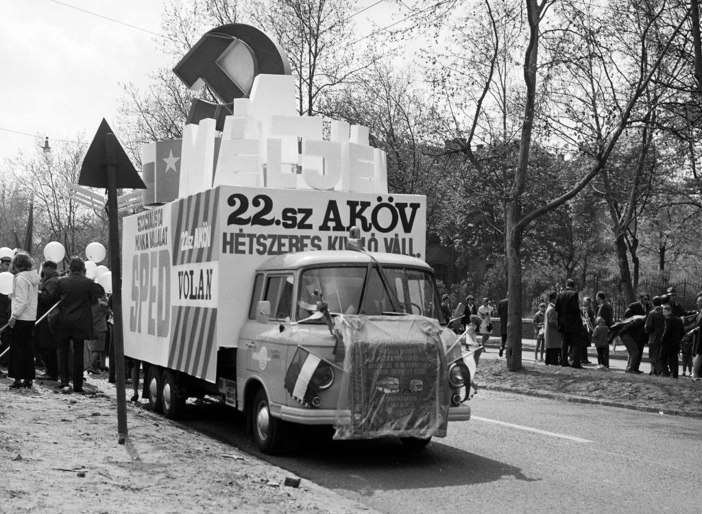 Május elseje jelentősége a múlt század második felének rendszerváltásig tartó szakaszában nem annyi volt, hogy nem kell dolgozni – a munka ünnepén! –, hanem a felvonulás, ahová nemcsak emberanyaggal készültek a különféle állami cégek és intézmények, különféle egyedi dekorációjú járművekkel. Ezek közül válogattunk a Fortepan kincseiből, nem kizárólag május elsején készült képeket.