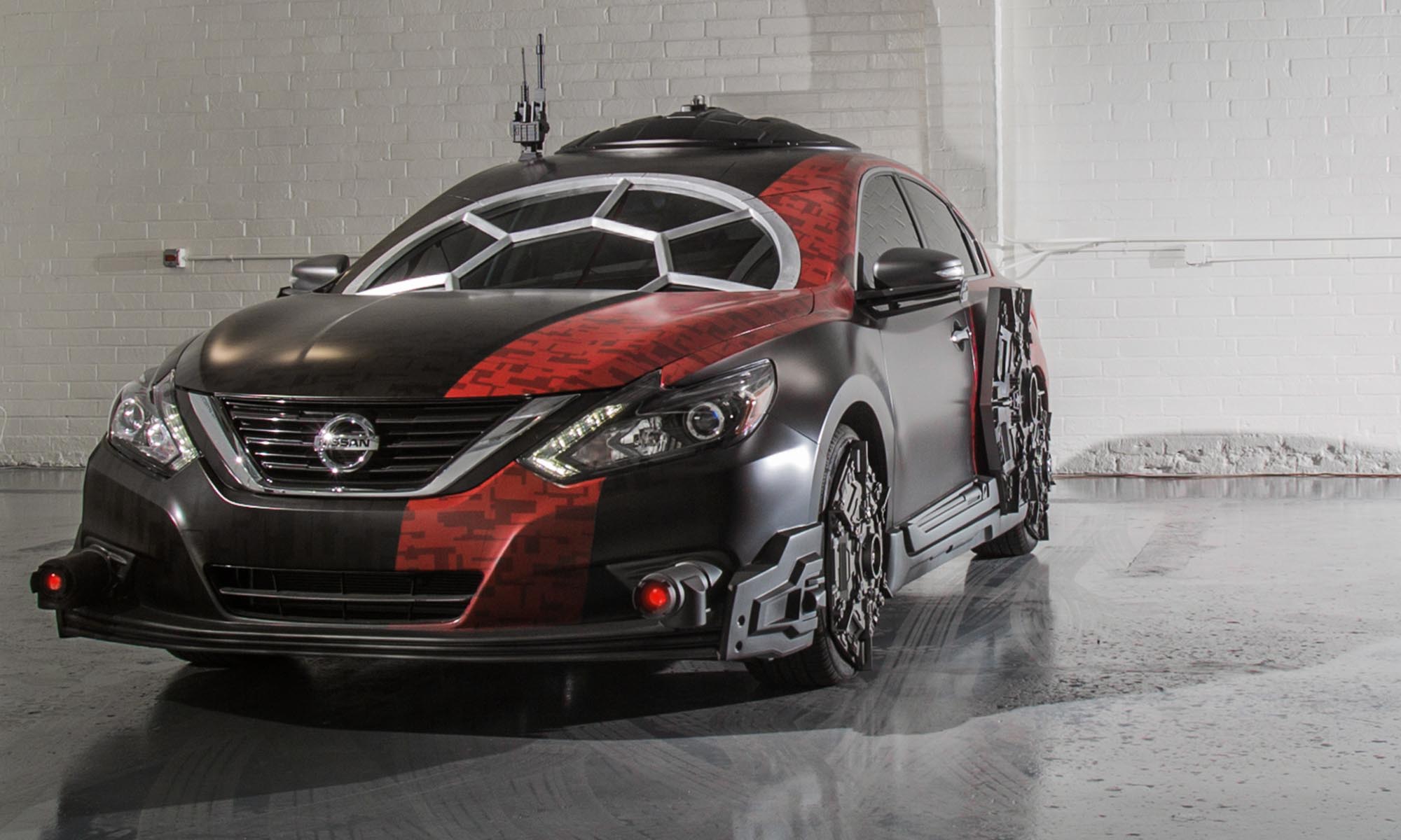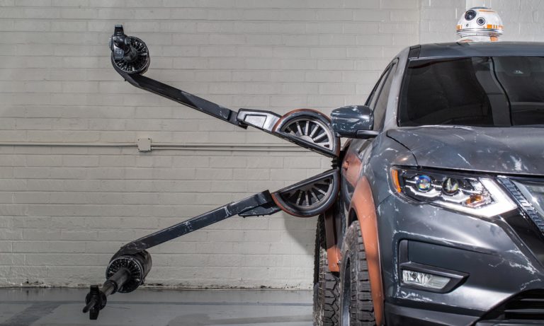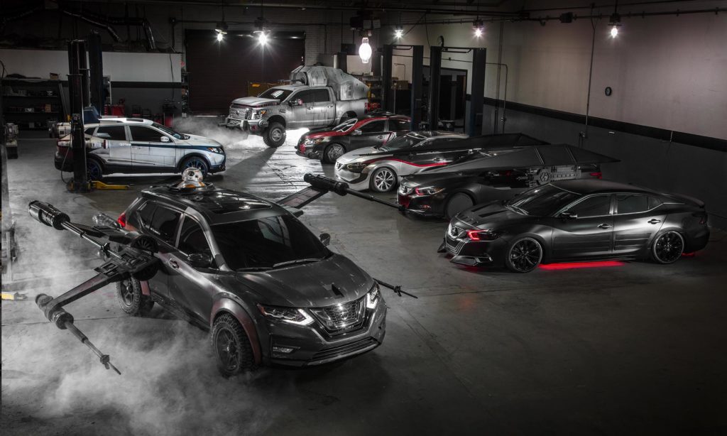 Szinte a teljes amerikai Nissan-kínálatot átalakították a Csillagok háborúja stílusában. Számunkra közülük csak a Qashqai és az X-Trail lehet ismerős, amelyeket a tengerentúlon Rouge és Rouge Sport néven forgalmaznak, de a nagy szedán Maxima és az óriás pick-up Titan is áldozatául esett a gyári műhelynek. Az egyiket az X-szárnyú, a másikat a TIE Fighter ihlette, még Kylo Ren maszkja alapján is építettek át autót, és BB-8 is helyet kapott.