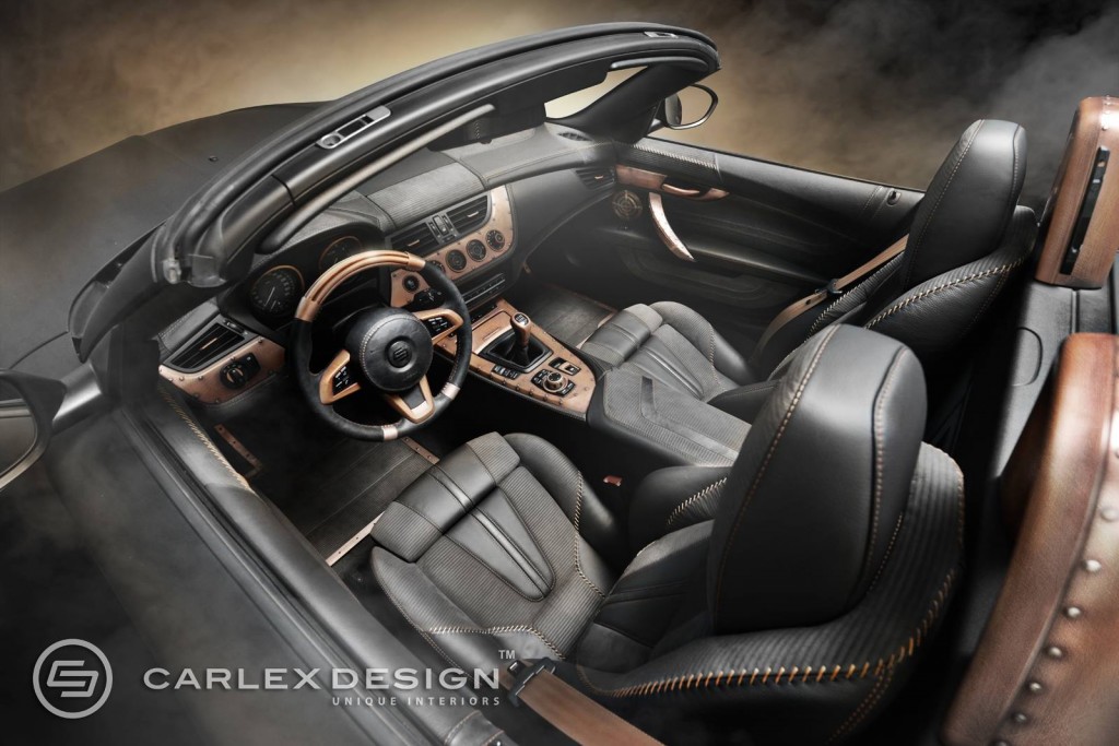 A bronzzal és vassal kivert BMW Z4 megjelenésénél csak egy jobb dolog van: a belseje, amely bár első ránézésre egy alternatív univerzum sok csatát megélt járművére próbál hasonlítani, valójában a legminőségibb bőrrel, Alcantarával és persze rengeteg rézzel és bronzzal csábítja el az érzékeny férfilelket. Csak nézd azt a kormányt, amelynek a teteje teljes egészében rézből készült és mondd, hogy nem lett könnyes a szemed!
