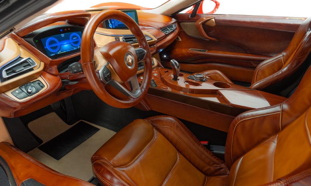Szinte minden részét barna bőrrel vonták be, és amit nem, azt fával borították, így a Taraschi Berardo utastere inkább hasonlít egy szivarszobára. A színes képernyők és a kapcsolók azonban ismerősek lehetnek a BMW-ből.