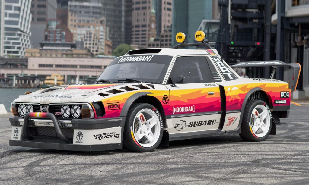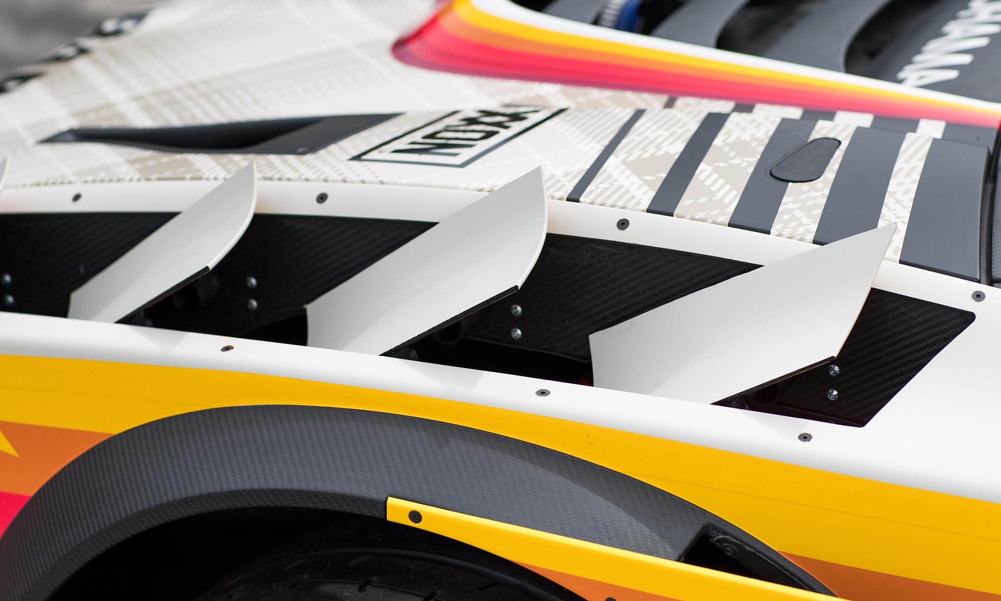Szénszálas karosszériáját a WRC-autók szabványa szerint készült bukócsővázra húzták rá, a szélesített dizájn a virtuális tuningról ismert Khyzyl Saleem érdeme, a retro festésen pedig kenguruk ugrálnak.