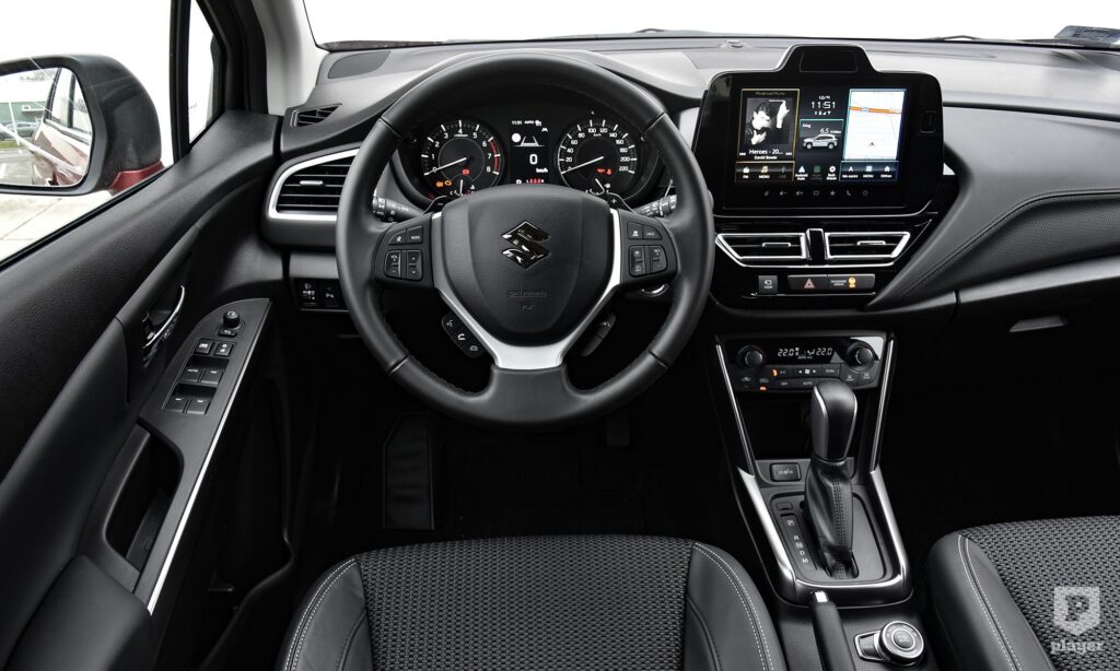 Az S-Cross vezetése közben feltűnhet, hogy a szerény teljesítménye ellenére is mennyire könnyedén mozog az autó. A titka egyszerűen annyi, hogy könnyű, még összkerékhajtással is csak 1300 kilogrammot nyom, ami a mai, túlsúlyos szabadidő-terepjárók világában pehelysúlyúnak számít. A 48 voltos mild hibrid rendszer 12 kilowattos motorja 50 Nm nyomatékával észrevétlenül segít be a gyorsításoknál, a motorindítás pedig sokkal finomabb a hagyományos, önindítós megoldásoknál. A futóművet érezhetően stabilra hangolták, és 4,3 méteres hosszával az S-Cross városi manőverezése is gyerekjáték. Az AllGrip, azaz összkerék-meghajtású változat nem fog kaparni, mert a hátsó kerekek hajtása automatikusan kapcsol, Sport módban pedig még egy kis extra lendületet is kapunk.