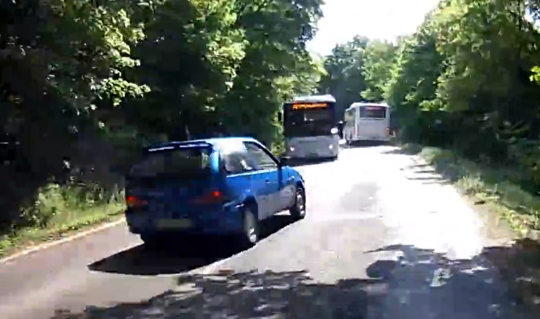 Az Indexnek küldte el egy olvasó a fedélzeti kamerás videót, amelyen az látszik, hogy egy régi Suzuki Swift centikre kerüli el a frontális ütközést egy Volánbusszal Páty és Budakeszi között.