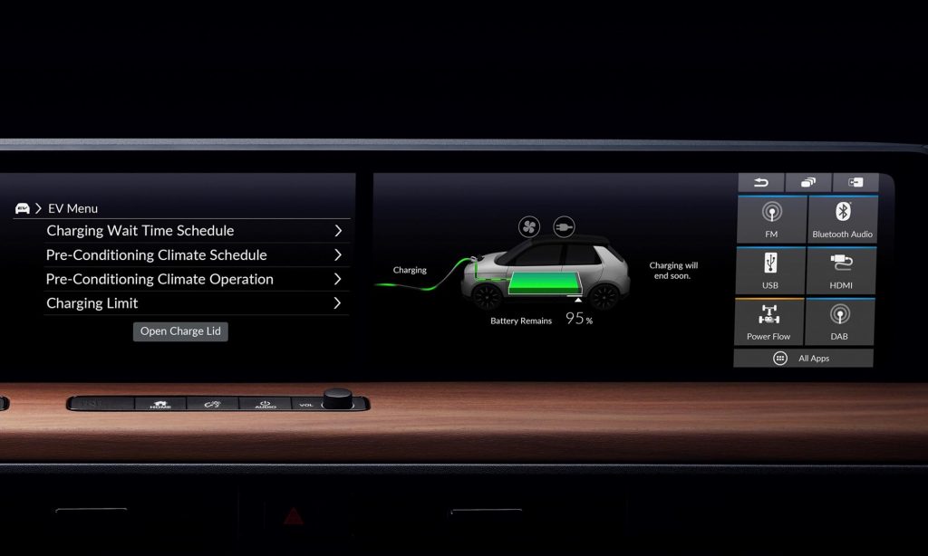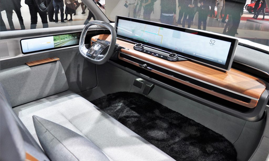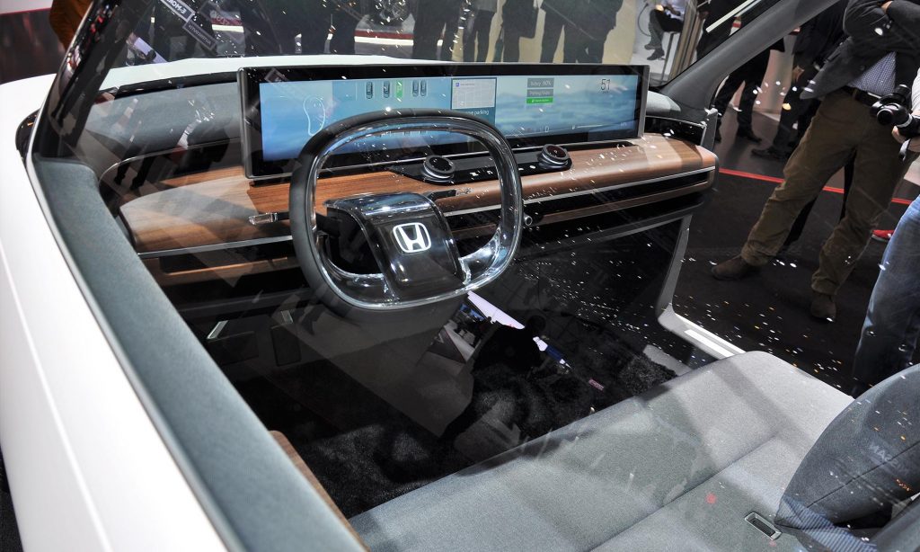 Abban az otthonos belsőt teljes szélességében egy hatalmas képernyő töltötte ki, és ha pontosan ilyen nem is lesz az új Hondában, de nagyon hasonló a három kijelzőből álló műszerfal. A kormánykerék mögötti képernyő mutathatja a sebességet és a menetadatokat, a másik kettőre további információ, zene vagy térkép kerülhet.