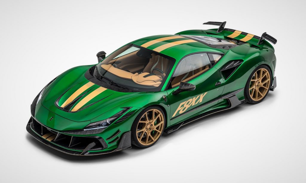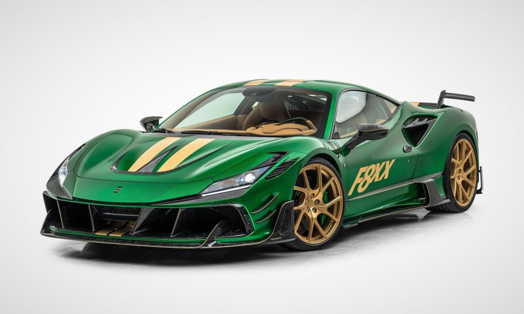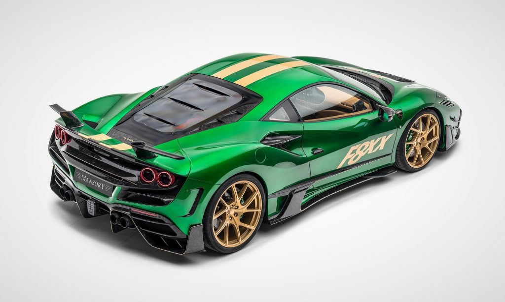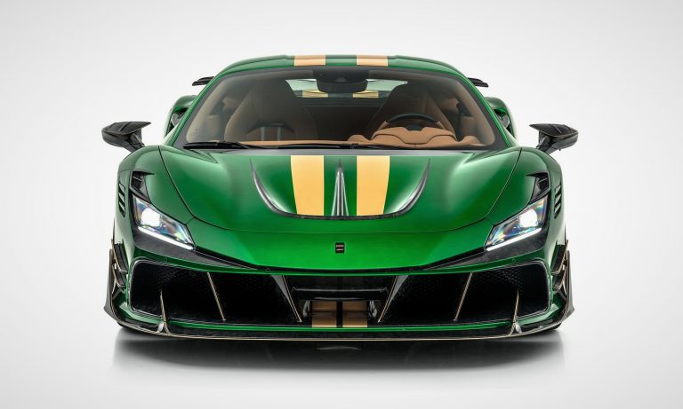 A Mansory munkáit lehet szeretni és lehet utálni, de az egészen biztos, hogy ki lehet tűnni egy olyan autóval, mint ez a Ferrari F8 Tributo. A 488 GTB utódjaként bemutatott modellen a szokásos receptet vetették be: rengeteg légterelő, a tuningcégre jellemző márványmintás szénszálas anyagból, és arculcsapó fényezés, esetünkben élénkzöld, aranyszínű kerekekkel.