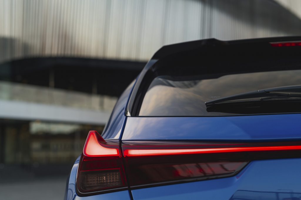 Elhangzott a japán dizájn-szellemiség megidézése is, amennyiben „elmosódik a kint és bent” érzése, és nem csak akkor, amikor le van húzva az ablak. Mi inkább egy-egy különösen penge részletre figyeltünk fel: a hátsó lámpák a stabilitás érdekében túlnyúlnak picit a kasztnin, és egy sínt képeznek, így terelve a légáramlatokat.