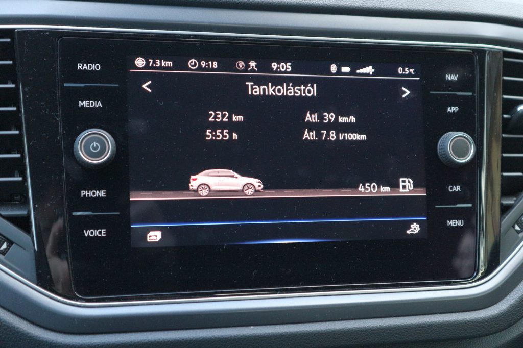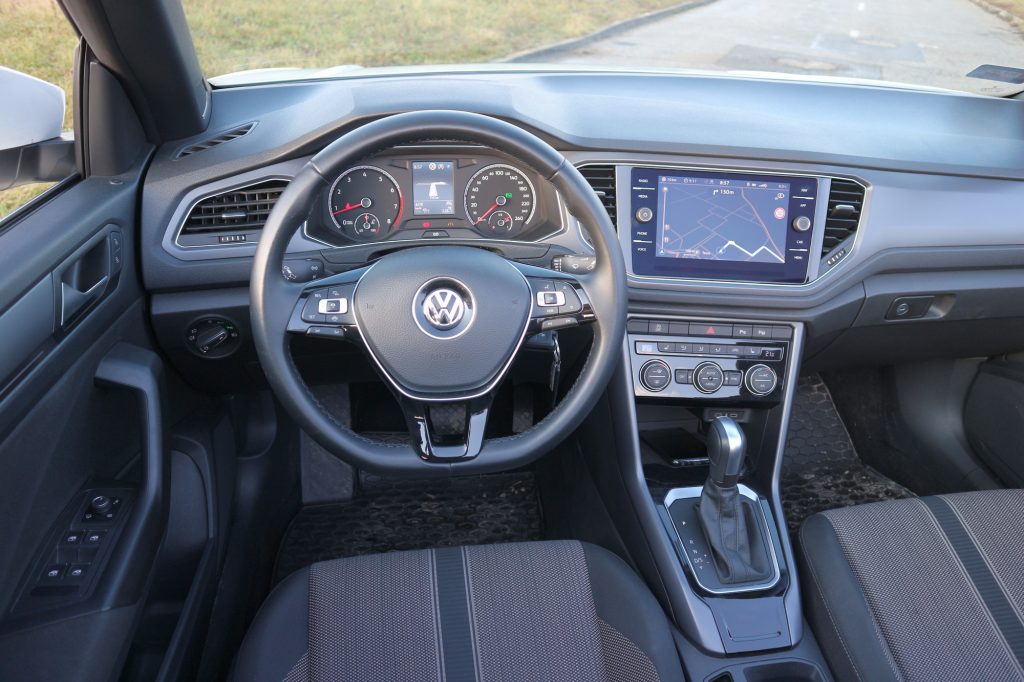 olyan dolgok ezek, amiket egyre ritkábban találunk meg a divatosnak szánt új autókon. A T-Roc Cabriolet viszont alap-közeli változataiban egy régivágású, józan, masszív, kiváló ergonómiájú autó lett, ami tökéletesen mellőz mindent a legújabb idők divatjából. Felárért ugyan kapható bele digitális műszeregység is, de a mi tesztautónk műszerfala így néz ki: