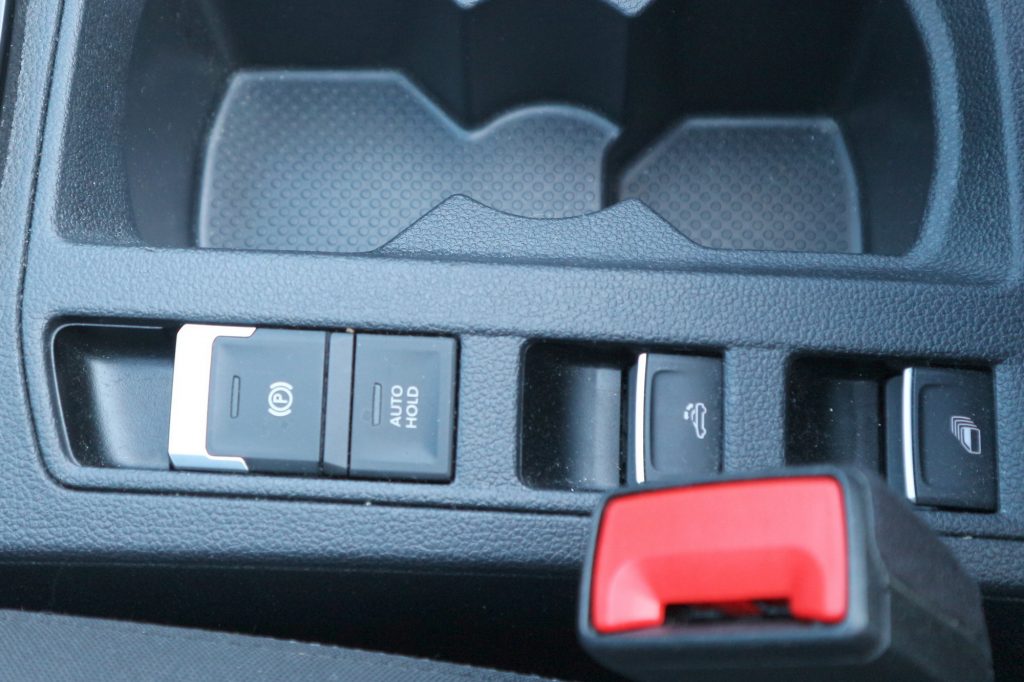 Mutatós órák, gombok az érintőképernyő mellett, alatt, sőt: rajta, tekerős villanykapcsoló, szürke, egyszerű, de tartósságot ígérő üléskárpit;