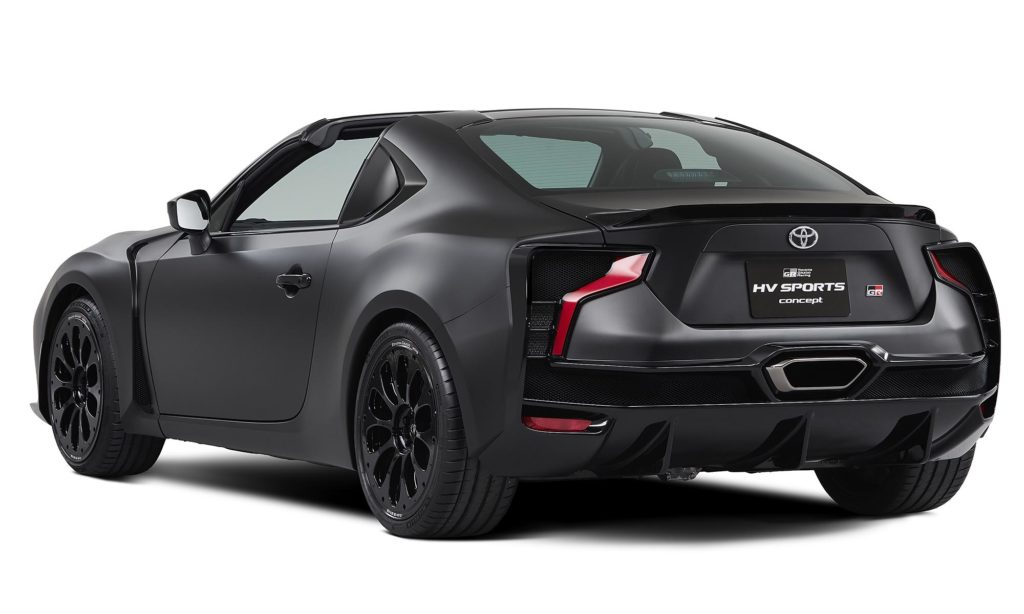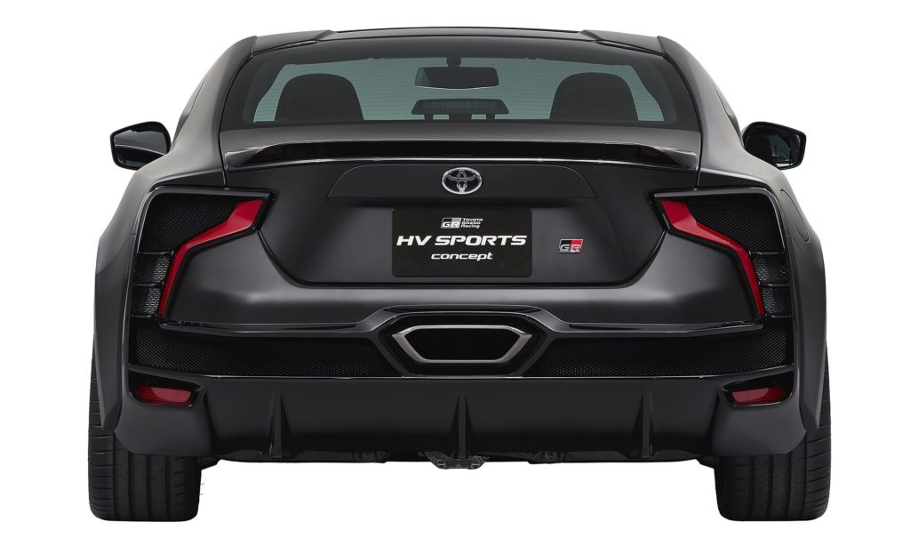 A formájába beleláthatod a GT86-ot, de a GR HV Sports Concept minden egyes eleme vadonatúj. Szélesebbek az első sárvédők, cápaszerű az orr, futurisztikusak a lámpák, és akkor ott van még a középen kivezetett kipufogóvég, a méretes diffúzor és a targatető. Hátulról nézve inkább tűnik a Lexus LFA kistestvérének, mint Toyotának.