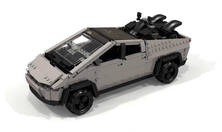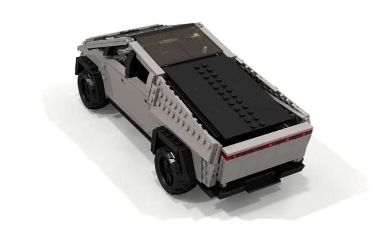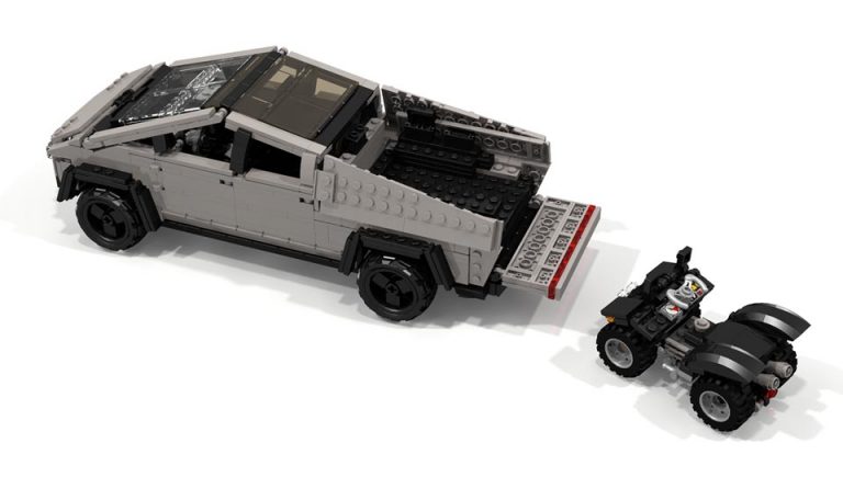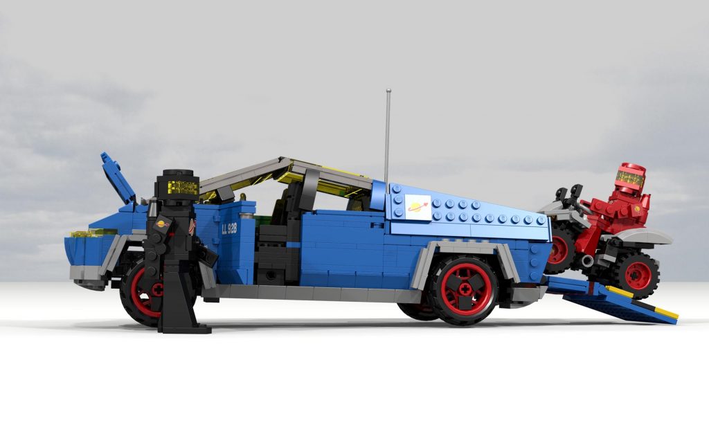 A Legóból épült Cybertruck hűen idézi a pick-up formáját, és olyan részleteket is tökéletesen hoz, mint a lenyitható hátfal, vagy a rajta lévő quad.
