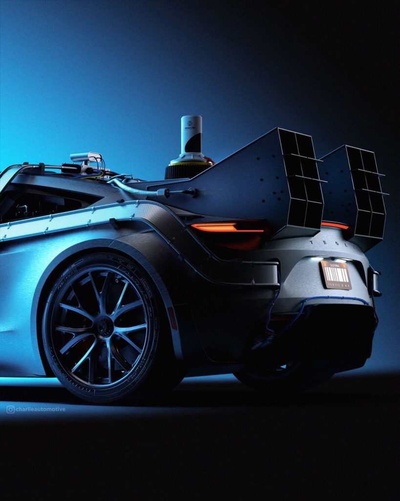 A Charlie Automotive grafikusa nemcsak elképzelte, hanem meg is mutatta, hogyan nézne ki rozsdamentes acél kasztnival és fluxuskondenzátorral a Roadster, az eredmény pedig egyszerűen lenyűgöző lett. Nem is nagyon kellene erőlködnie, hogy elérje az óránként 88 mérföldes sebességet.