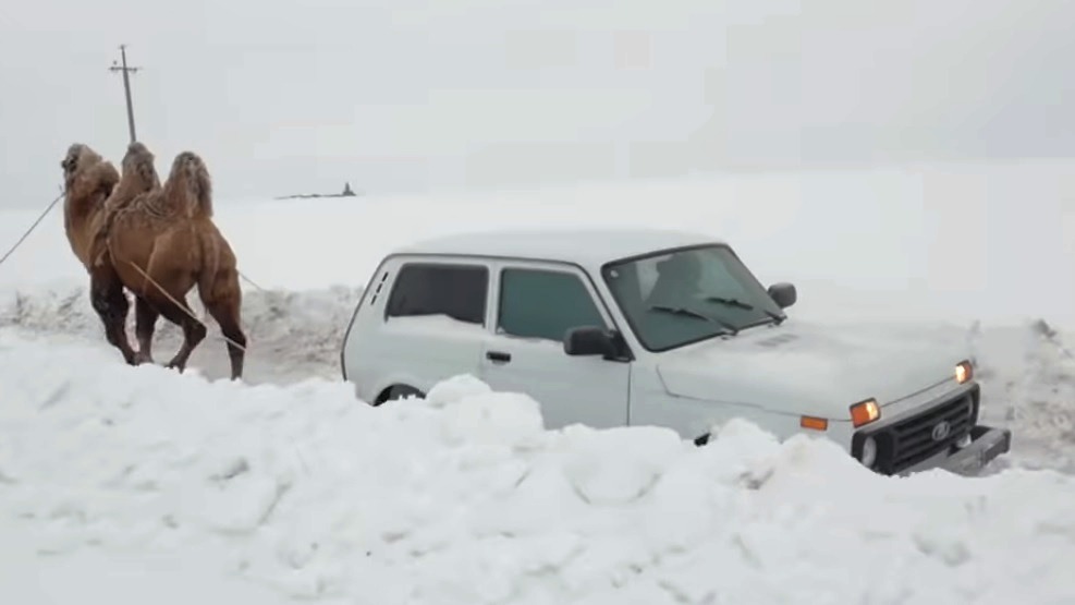 Nagyjából semmit nem értünk az alábbi videóból. Egy havas, de letakarított úton elakadt egy Lada Niva 4x4. Már ez is érdekes, az összkerekes terepjáró ennél azért komolyabb akadályokkal is meg szokott küzdeni, de oké, lehet, hogy rossz volt a gumija mondjuk. De honnan keveredett oda egy teve?!