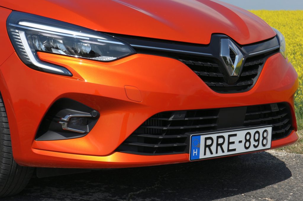A méretek csaknem ugyanazok, de az ötödik generációs új Clió pont azzal az egy centivel alacsonyabb, első túlnyúlása pedig azzal a másik centivel rövidebb, amitől végképp a helyükre kerülnek a dolgok. Az egységes mai Renault-front implementálása is jól sikerült, a szigorú pofa a nagy, de érdekesen tagolt lámpatestekkel a Talisman, a Mégane és a crossoverek után ennek a kis Renault-nak is jól áll. A gyár által C-alakúnak nevezett, de persze a tükrözés miatt helyesen inkább zárójel alakú lámpák már alapártól LED-esek, amire a bura alatti elegáns, nagyautós felirat is felhívja a figyelmet.