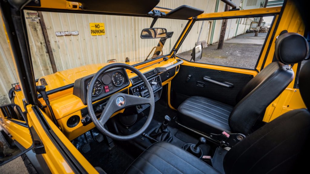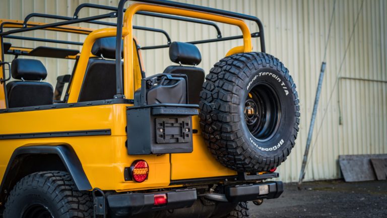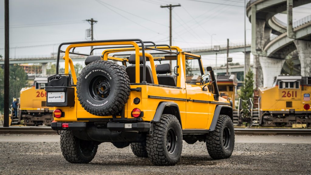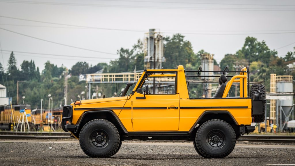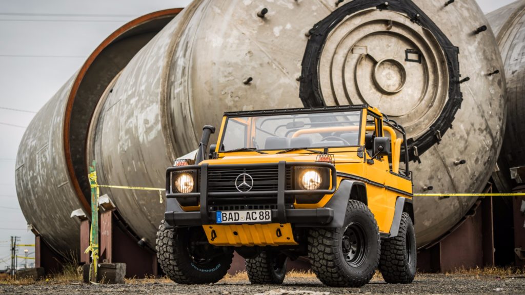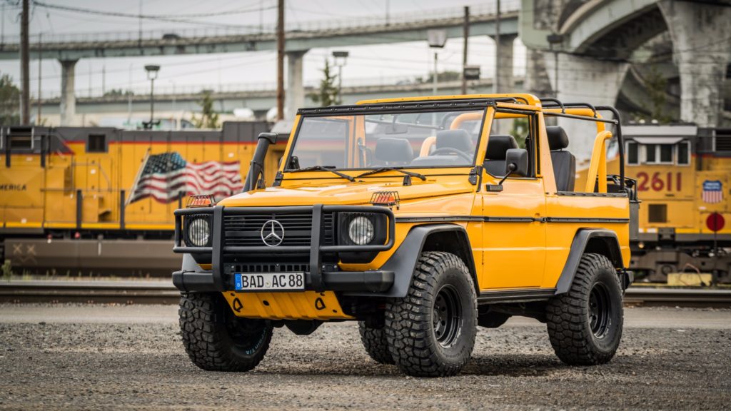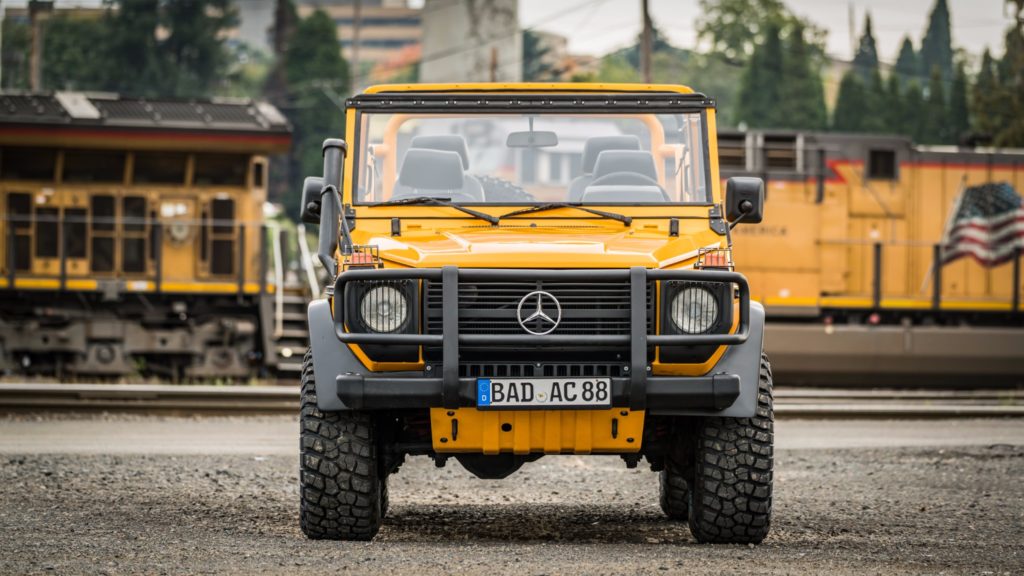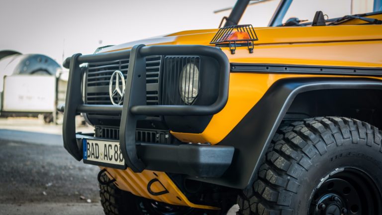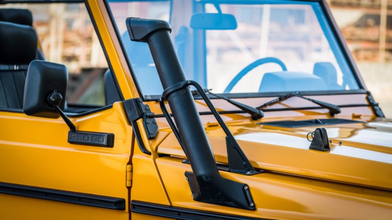 1990-ben készült el ez a Mercedes-Benz 250 GD, ami a Bundeswehr kötelékében kezdte a pályafutását, de miután leszerelt a német hadseregtől, új életet kezdett. A karosszériáját a fémig lecsupaszítva teljesen újrafényezték, az ötfokozatú váltóját felújították, megemelt és kényelmesebb futóművet és erősebb kuplungot szereltek fel, az új acélkerekekre BF Goodrich terepgumik kerültek, és a vászontető is új.