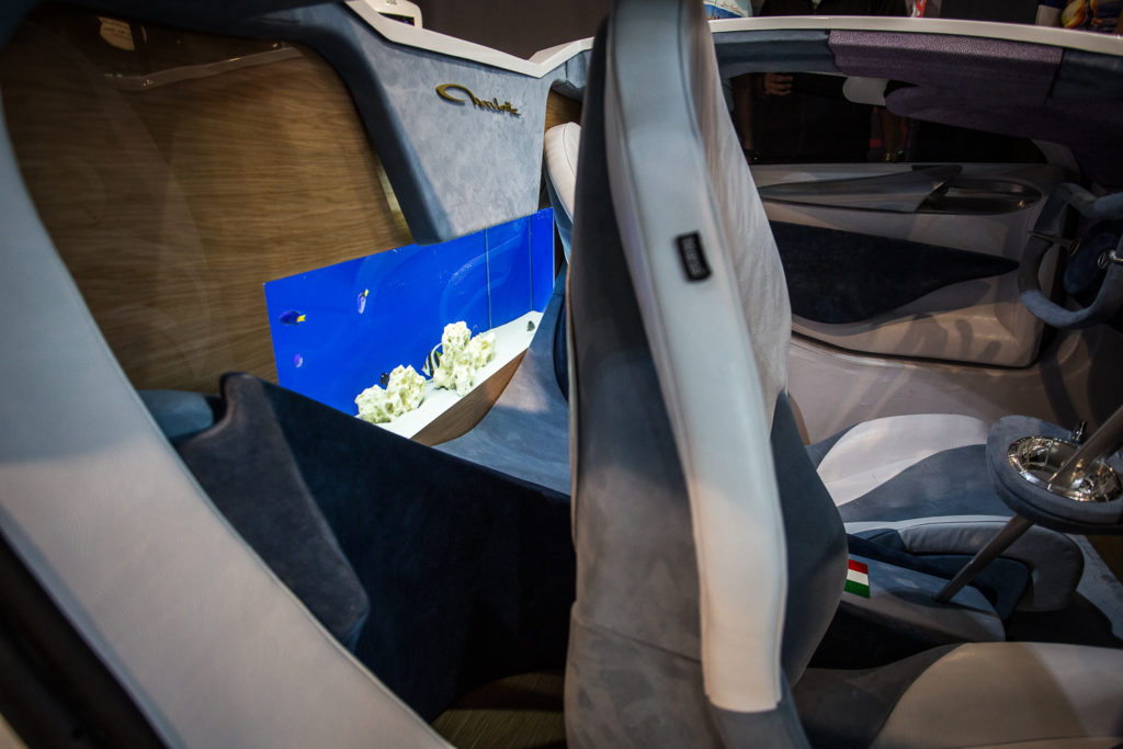 Két olasz tervező szüleménye, és elektromos hajtású. Mindjárt négy villanymotor is dolgozik benne, mindegyik kerékhez jutott egy, a kombinált teljesítményt 900 lóerőre becsülik. A Charlotte már a második prototípus, ez a nyitott tetős változat, ahol az ülések mögött egy akvárium is helyet kapott. Igen, halakkal.