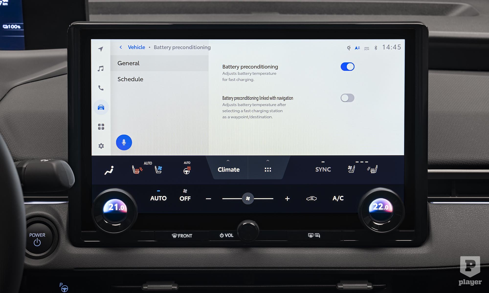 a hatékonyabb töltés érdekében az akkumulátor temperálását manuálisan és automatikusan is el lehet indítani a menüből,