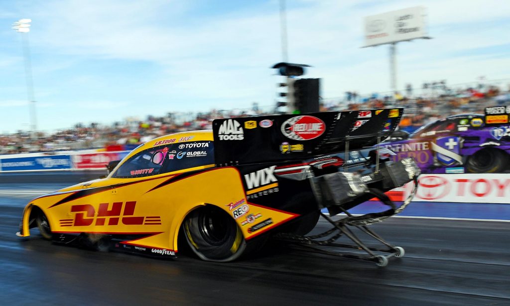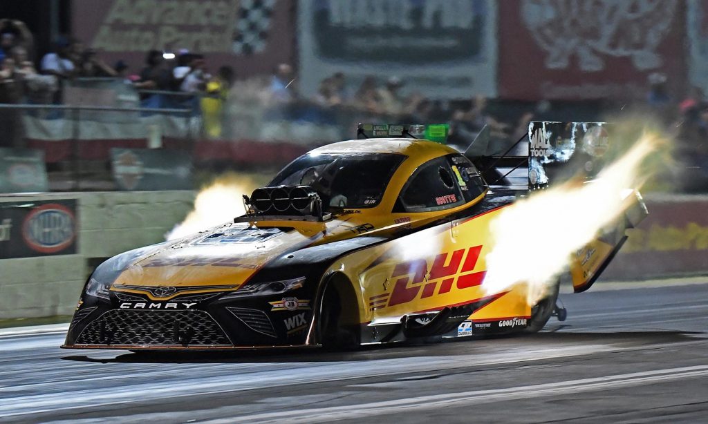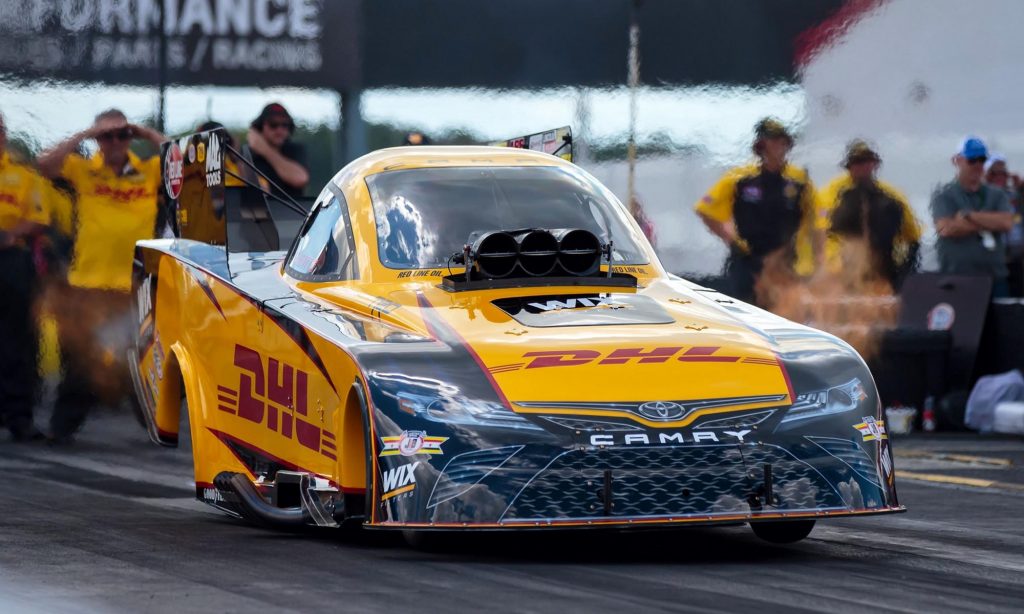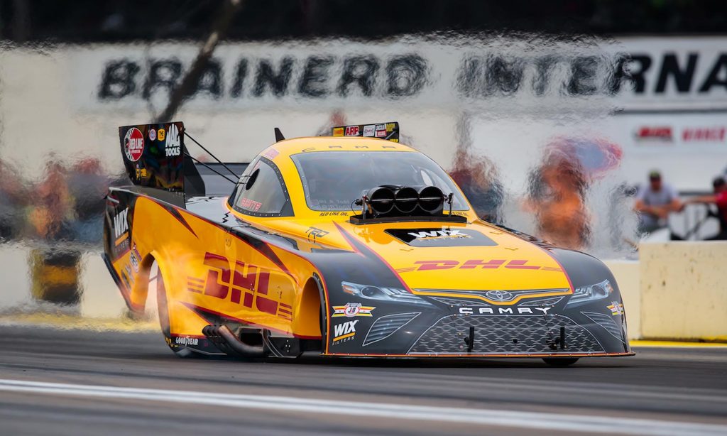 A karosszériája nyomokban a Toyota Camry formáját idézi, de persze teljesen egyedi konstrukció az a dragster, amivel J. R. Todd az elmúlt évben megnyerte az amerikai hot rod szövetség által szervezett gyorsulási bajnokság egyik csúcskategóriáját, a Funny Car géposztályt. Az autót a Toyota versenyrészlege segítségével készítik fel, ők tervezték és gyártották le hozzá a Camry megjelenésére hajazó szénszálas karosszériát.