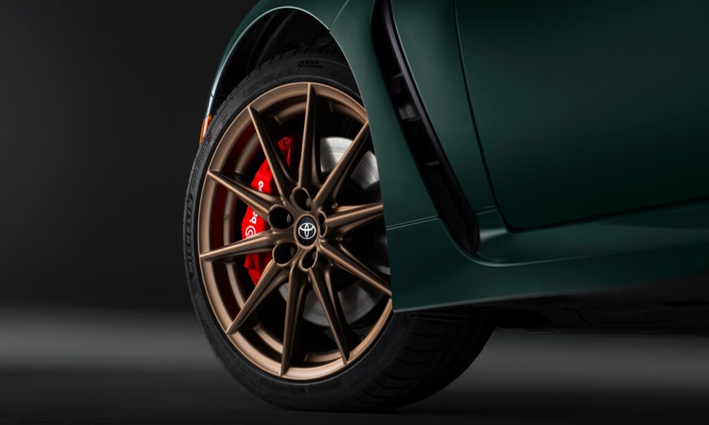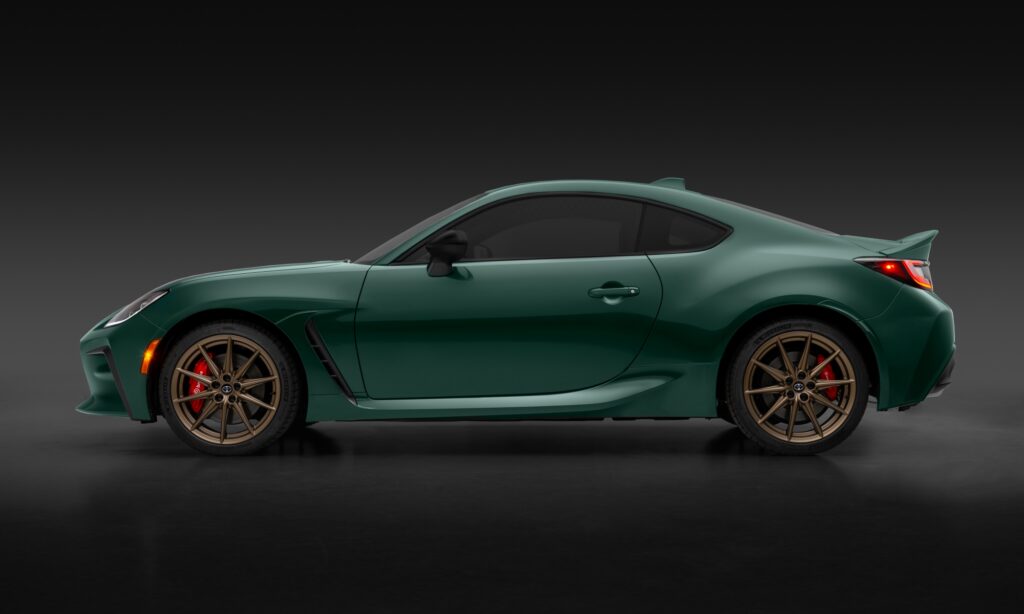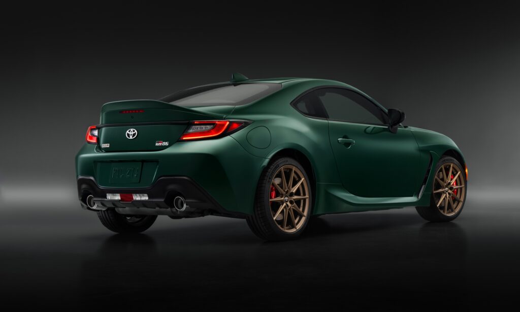 Kizárólag az amerikai piacra készül a 860 darabos limitált széria, melynek sötétzöld metál fényezését tökéletesen kiegészítik a bronz felnik és a nyeregbarna bőrrel kárpitozott utastér. Igazán elegáns így a GR86-os, melynek valójában a felejthetetlen vezetési élmény a lényege, ehhez pedig van egy nagyszerű kormányzása és az eddiginél harapósabb gázreakciója, valamint áthangolták a futóművét is.