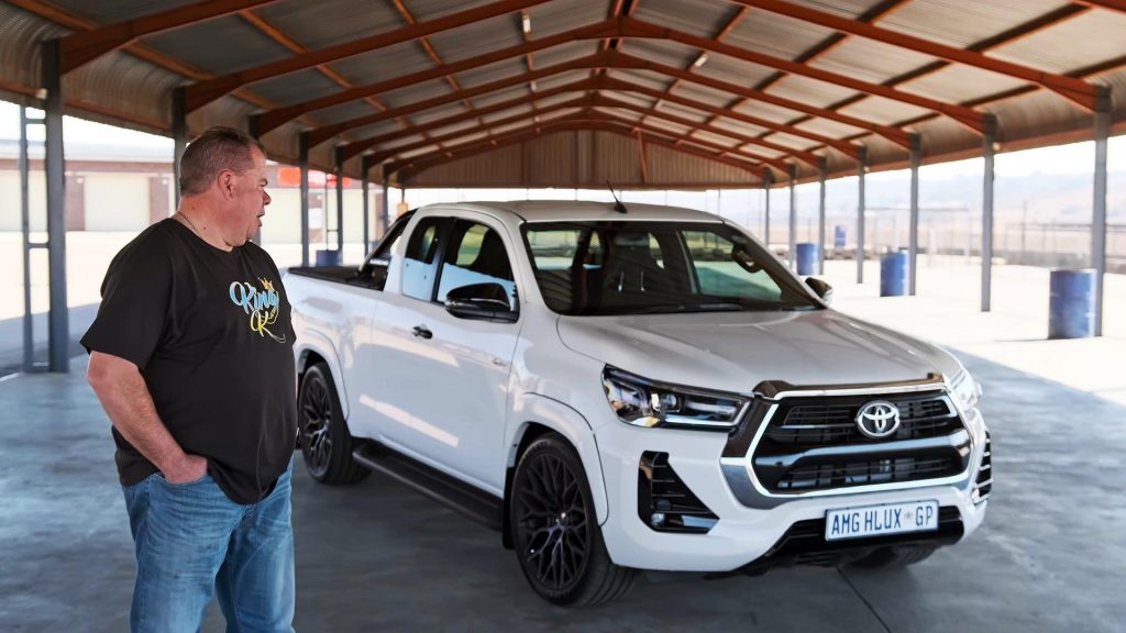 Egy dél-afrikai Hilux-tulajdonos nem akármilyen motorra, hanem az AMG-től származó 6,2 literes V8-asra cserélte a Toyota négyhengeresét a pick-upjában. Pedig az autóval nem gyorsulási versenyekre jár, hanem a mindennapi ügyeit intézi és rendszeresen vontat. „Szenvedélyem az egyedi járművek építése, és ehhez a japán modellek jelentik a legjobb alapot” – mondja.