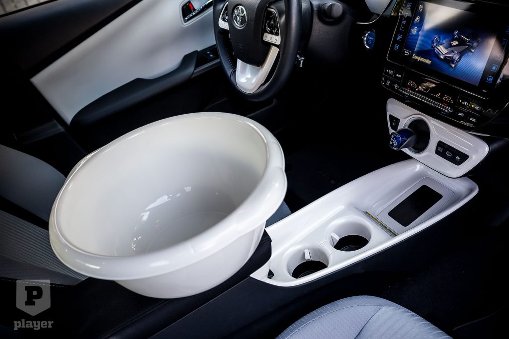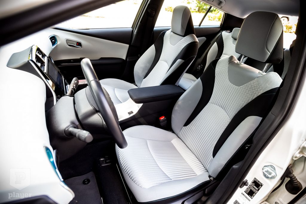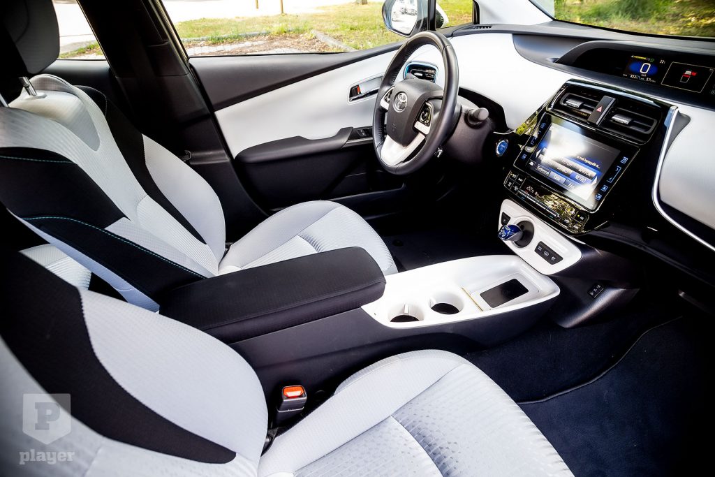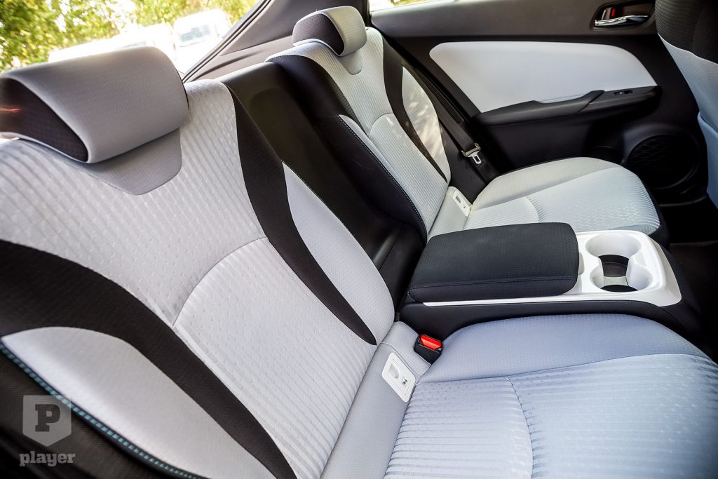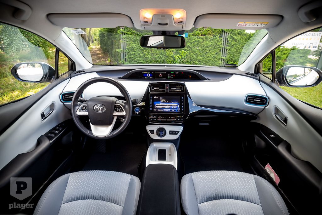 Beülve tűnik fel, hogy a lejtő tetővonal nem vesz el a fejtérből, mivel az első ülések fölött a szokásosnál több a hely, ezért a hátsó utasok feje fölött is marad még elég. De sok más jobban feltűnik: például hogy a konnektoros Prius csak négyüléses. Drága limuzinoknál ez nem ritka – melyik vezérigazgató-oligarcha-uralkodó szereti, ha nem utazhat kényelmesen, mert valaki kényszerből oldalról nyomorgatja –, a Prius viszont inkább a hagyományos felhasználású családi vagy céges kocsik alternatívája lehet(ne), azoknál pedig néha kellhet az ötödik ülés. A helyén pakolóhelyet és kartámaszt találunk, ám olyan alacsonyan, hogy a könyökünket csak akkor tudjuk kényelmesen ráhelyezni, ha a karunk vállból lecsatolható. A csomagtér pedig sajnos nagyon alacsony: mondhatnánk, hogy jó, mert nem kell mélyre nyúlni, de nem ez fog eszünkbe jutni, amikor még egy kisebb bőröndöt sem tudunk állítva beletenni.