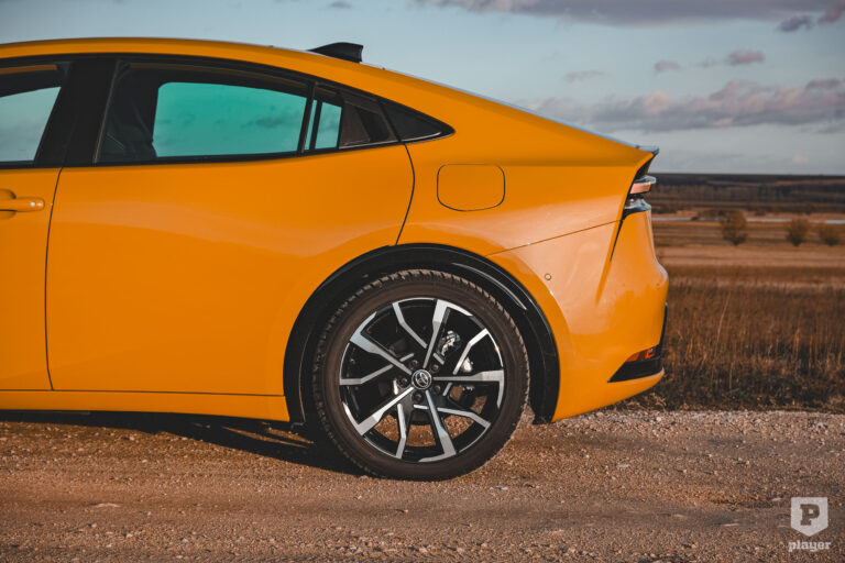Ha beülni vagy a kocsit megpakolni nem is nagy öröm, kiszállni mindig csodálatos élmény az új Priusból. Az ember becsukja az ajtót, ellép az autótól, visszanéz, és nem bír betelni azzal, amit lát. Határozott ékalak, elegánsan sliccelt oldalablakok, jókora kerekek, szép az arca, szép a segge, minden részlet a helyén van: olyan a kocsi, mint egy gyártásba soha nem kerülő prototípus.
