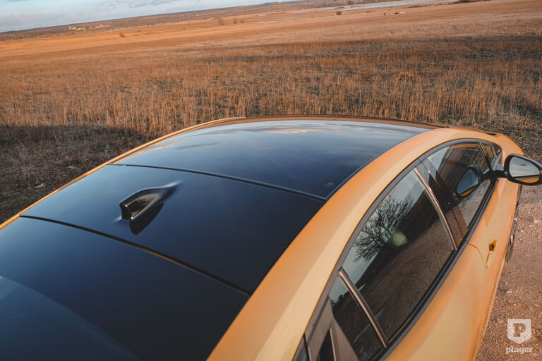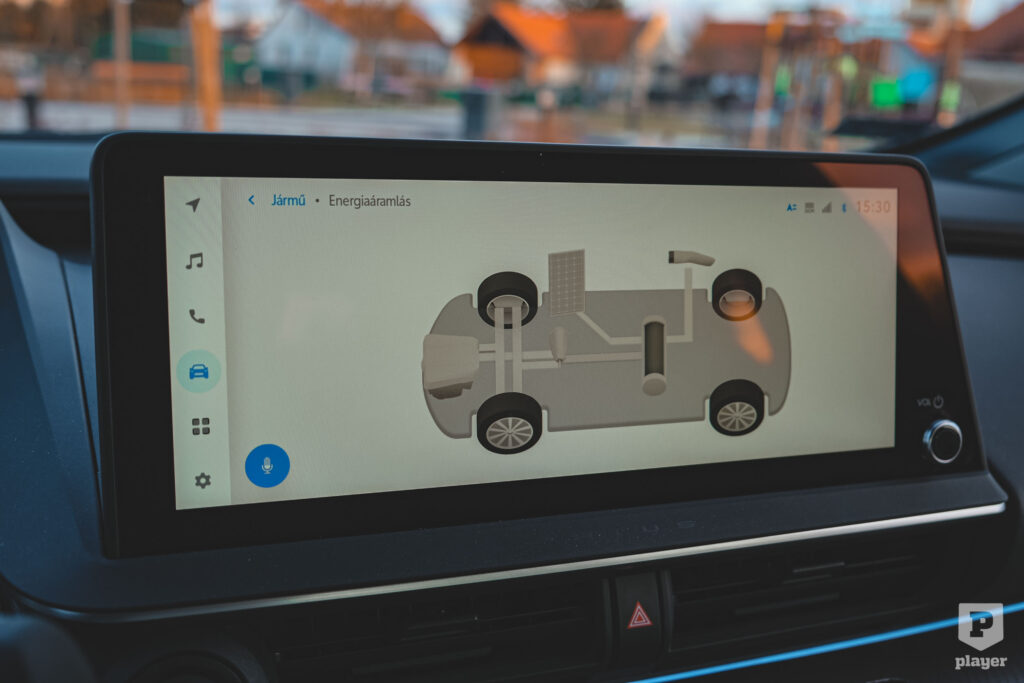 Persze az biztos nem menne el akár 7-800 kilométert egy „feltöltéssel”, ami nem túl agresszív vezetéssel a bruttó 13,6 kWh-s akkuval és a 40 literes benzintankkal simán összejöhet. (Sztrádán inkább 600-zal lehet számolni.) A napelemes tető természetesen nem sokat ad hozzá ehhez a hatótávhoz, de műszaki érdekesség, hogy a szolárpanel nemcsak az utasteret szellőzteti, hanem, amennyire bírja, tölti a hajtóakkumulátort is.