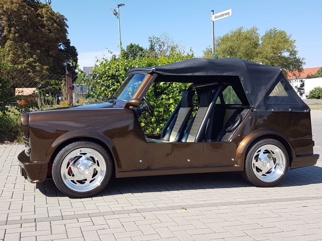 Az AutoScoutra töltött hirdetés szövege szerint az eredetileg is négyütemű Trabant Tramp egy 1,6-os, 75 lóerős motort és ötös váltót kapott, BMW-féle marrakesh-barna színt, kézzel, Bentley-bőrből varrt üléseket, rozsdamentes acél kipufogót, spéci felnit, xenon fényszórókat, de a 49 ezer eurós ár így is elég magabiztos tulajdonosra utal. Különleges autó, az tény.