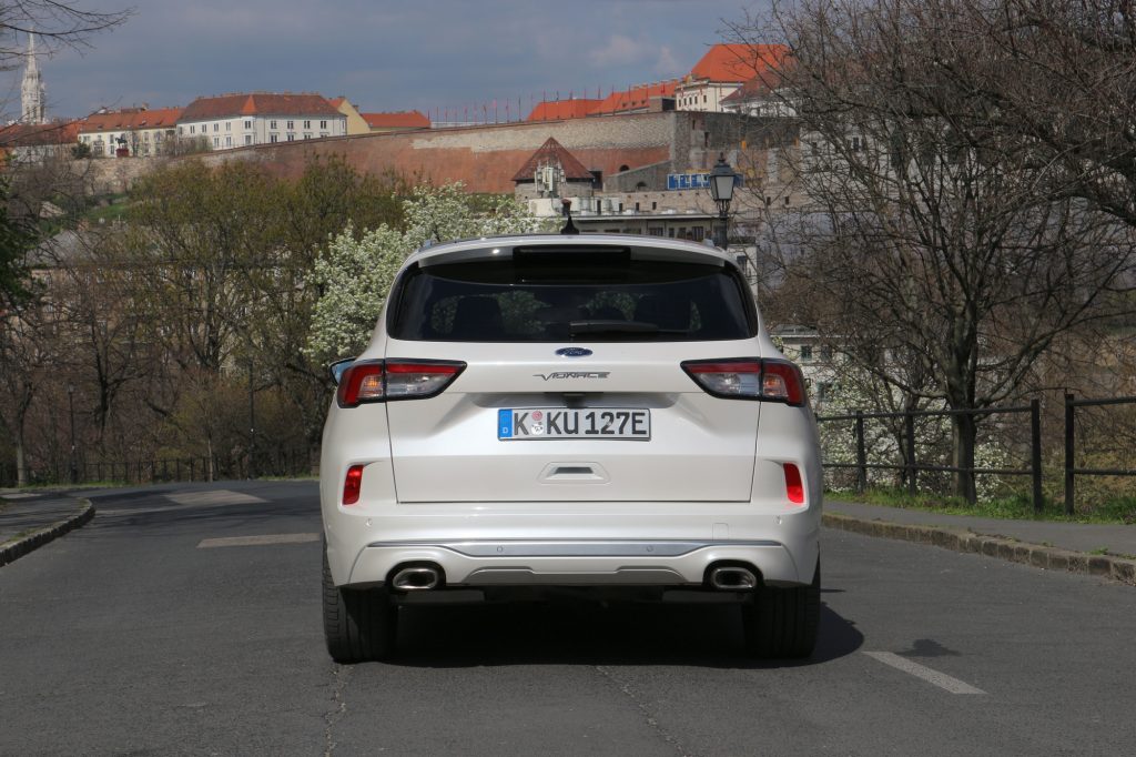 Az utastéri komfort jó, a hibrid Kuga hosszú utakon is pihentető, nyugis élményt tud adni. A B&O hifi átlagon felüli minőséget nyújt a kategóriában, a klimatizálás csendes és hatásos. És van pár apróság, aminek mindig meg lehet örülni: a tanksapkamentes benzintöltőnyílás, az ajtók éleit védő mechanikus Ford-találmány, az alárúgós csomagtér-nyitás, a BMW-től ellesett, kétszeri húzásra a reteszelést is oldó motorháztető-nyitás.