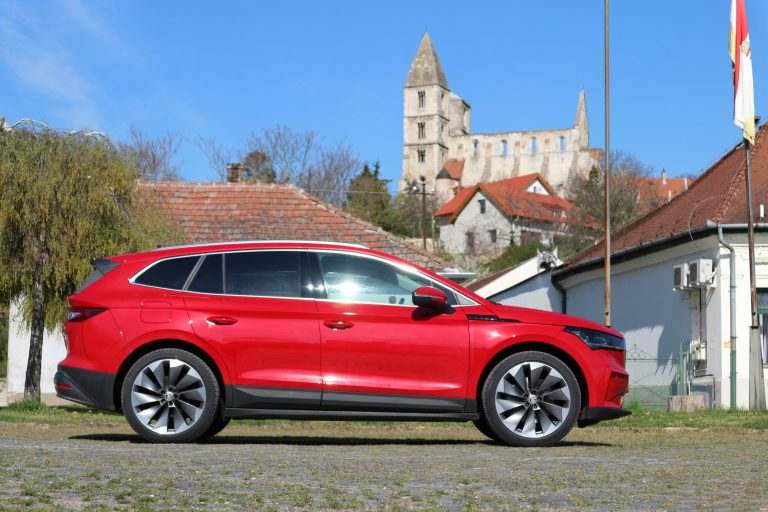 Az Enyaq induló ára 52 kWh-s akkuval 14,5 millió forint. A 80-as jelzésű modell már 18,4 millióról indul, a piros tesztautó pedig az extráival egy 21 milliónál is drágább kocsi. (A konfigurátor ide kattintva érhető el.)