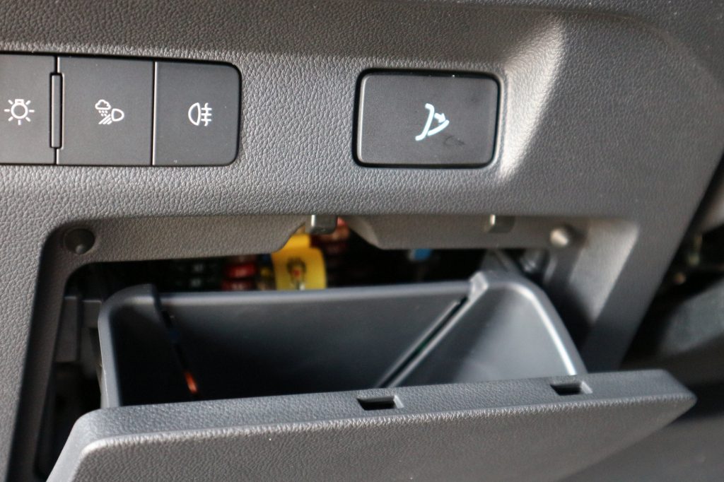 A jellegzetes skodás ötletparádéból egyelőre két kis új jópofaságot sikerült felfedeznem, de mindkettő sokkal inkább csak Simply, mint Clever. Az egyik egy neoprén szatyor, sőt: inkább vödör, amibe a töltőkábelt lehet tenni - ilyet még nem láttam villanyautóban. A másik pedig a furcsa ábrával jelölt gomb a világításkonzol mellett, amit megnyomva egy apró, teljesen felesleges, de nagyon cuki kis fiók nyílik ki.