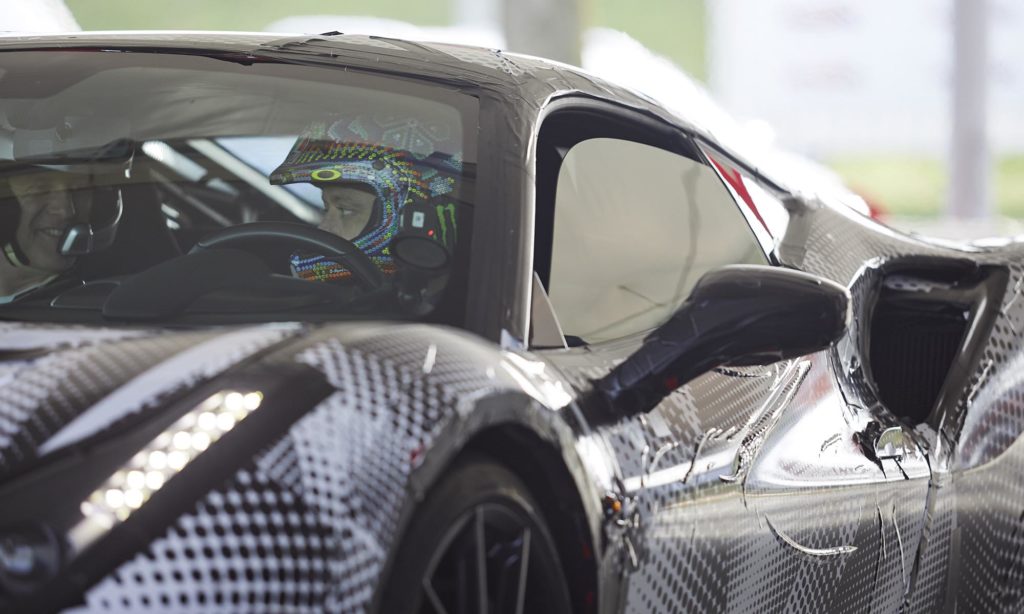Nem indokolja semmi az álcafóliát, hiszen a Ferrari már hivatalosan is leleplezte a legújabb modelljét, mégis ezzel borították a 488 Pista prototípusát, amit a fioranói tesztpályán engedtek szabadjára. Valentino Rossi, miután harmadik lett a katari nagydíjon, örömmel ült a 720 lóerős sportautó kormánya mögé, hogy kipróbálja, mire képes.