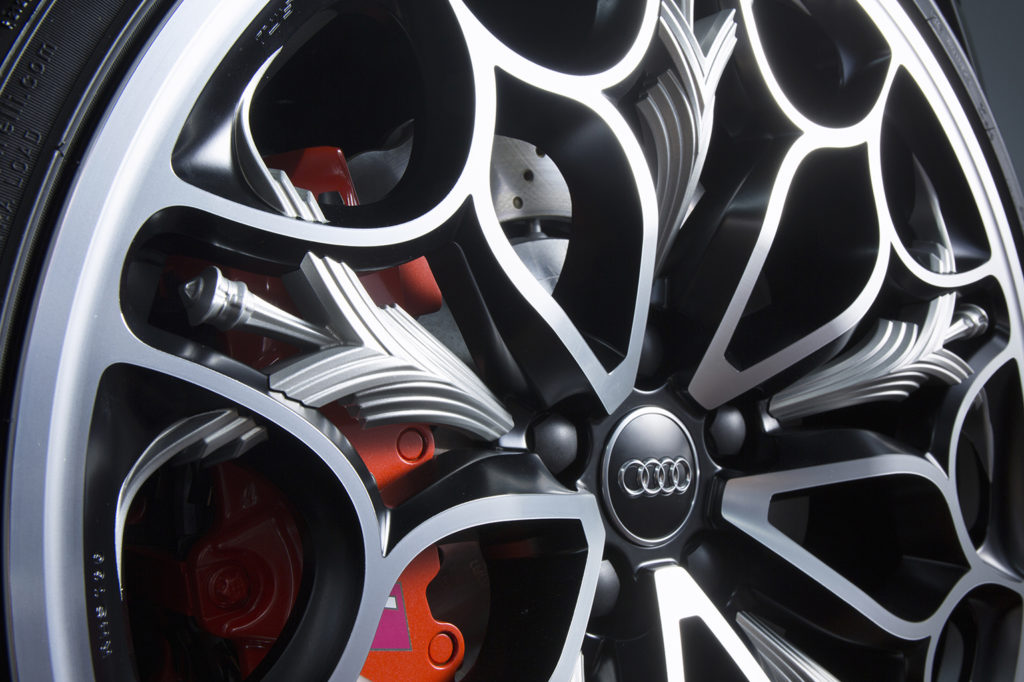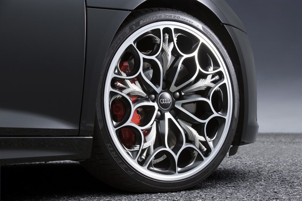 A Final Fantasy XV által inspirált Audi kevés ponton tér el a szériamodelltől, de azért látványos a különbség. Egyedi mintát kaptak a burkolatok, a legfeltűnőbbek azonban alighanem a 20 colos könnyűfém kerekek, amelyek csak ezen az autón láthatók.