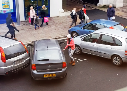 Könnyű ebből a helyzetből kiparkolni? Igen. De ennek a sapis csajnak még úgy sem jött össze, hogy megtámaszkodott a balján álló Nissanon.