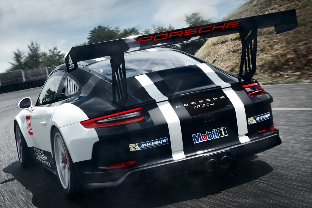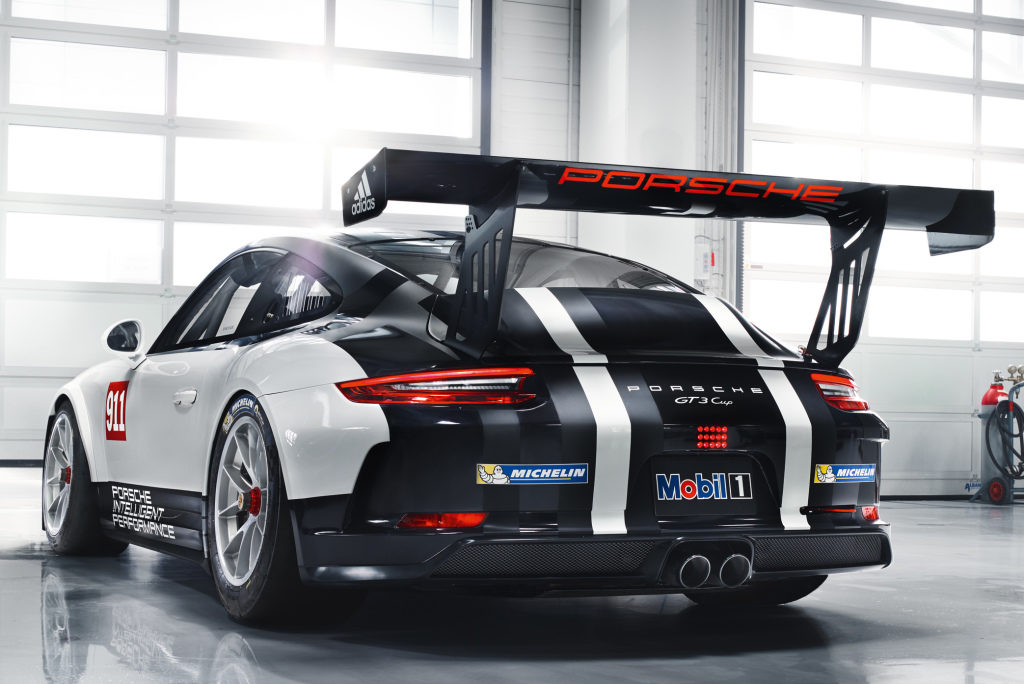 Már a jövő évi versenyszezonra készül a Porsche a 911 GT3 versenyváltozatával, amely megújultan állt a párizsi autószalon standjára. A Cup kivitel megtartotta a leginkább jellegzetes elemét, a 184 centiméter széles hátsó szárnyat, de a központi kerékcsavaros, 18 colos felnijei is változatlanok. A kerekekre előre 270, hátulra pedig 310 mm széles Michelin abroncsok kerülnek.