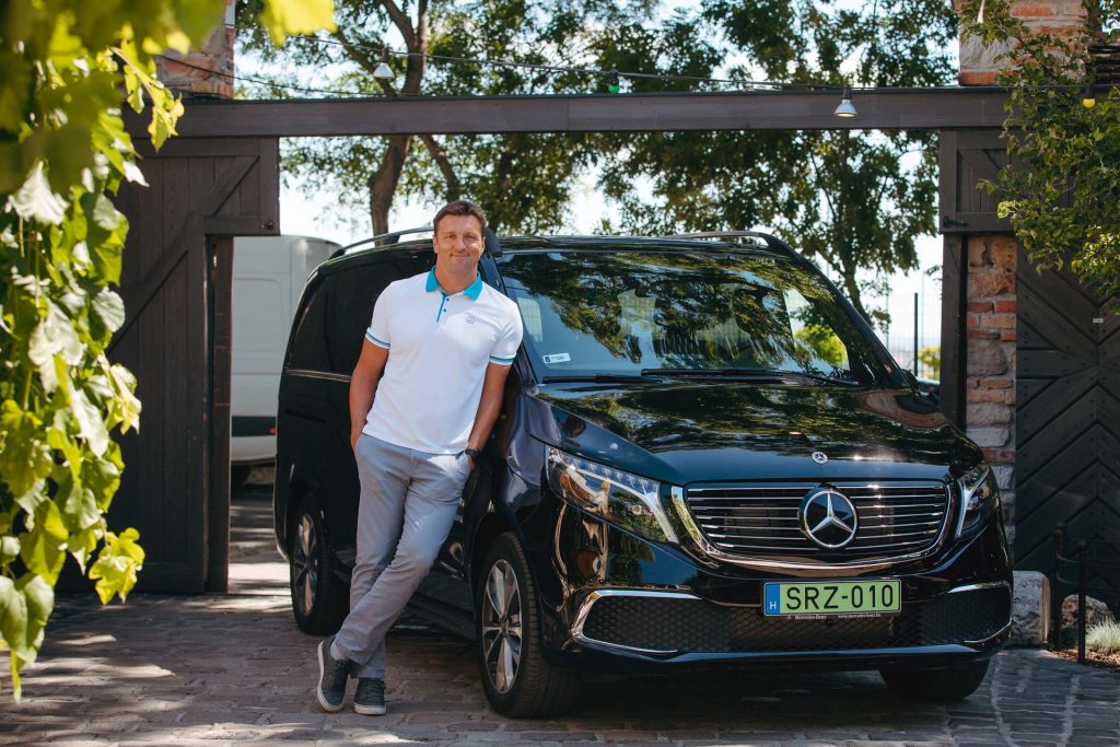 Kiss Gergő, háromszoros olimpiai bajnok vízilabdázó mostantól egy elektromos V-osztállyal fuvarozza a családját ide-oda, mint a Mercedes márkanagykövete.