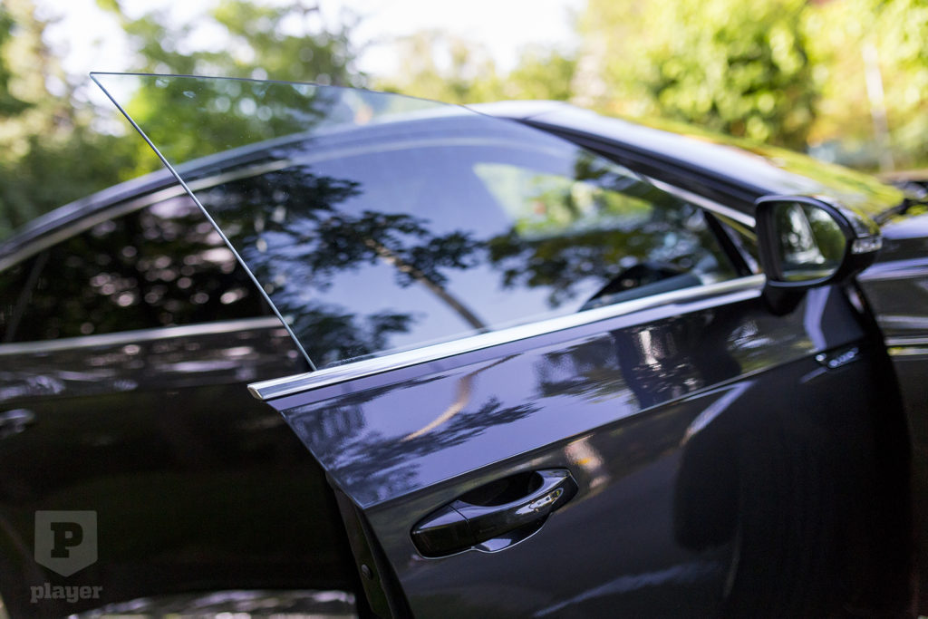 Kívülről is vannak rajta – elsőre nem biztos, hogy szembetűnő – apróságok, amik az összhatáshoz hozzátesznek. Ilyenek a keret nélküli ablakok, a morcosnak tűnő lámpák vagy a króm díszlécek kétoldalt.
