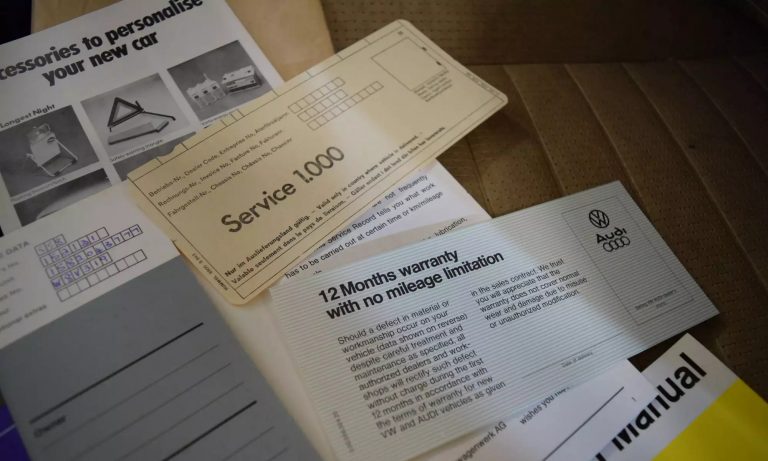 Minden dokumentációja hiánytalanul ott figyel az autóban, innen az is tudható, hogy a kabrió Bogarat az angliai Walsall városának Volkswagen márkakereskedésében vették át 1979-ben. Azt azonban homály fedi, hogy miért nem gurították ki soha többet a garázsból, ennél fogva a Bogár szervizkönyvében sincs még egyetlen bejegyzés sem.