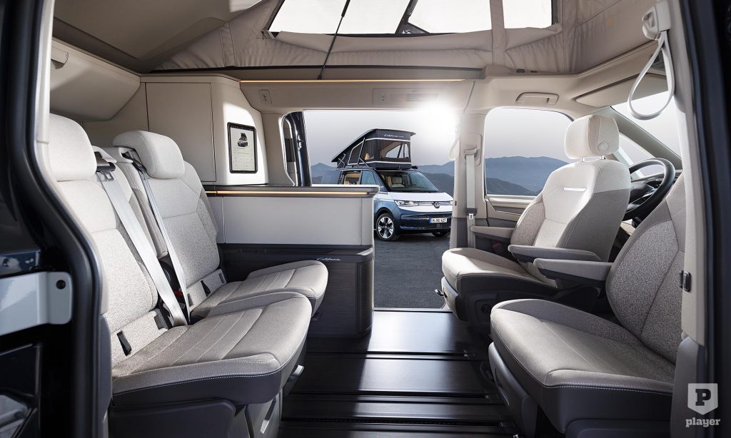 Hosszabb karosszériája tette lehetővé, hogy a Volkswagen tervezői átgondolják a California berendezésének koncepcióját. A korábbi modellek csak jobb oldalt kaptak tolóajtót, a belső tér bal oldalát a konyhapult foglalta el.