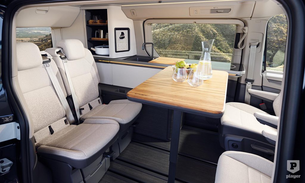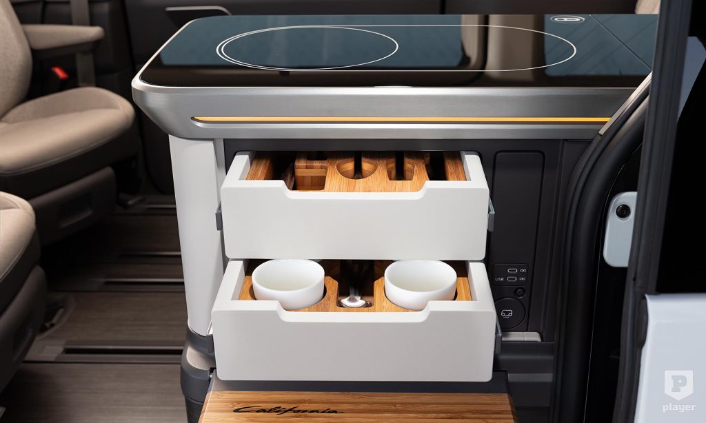 Konyhapultját úgy alakították át, hogy a mosogató, a tetejére kihúzható indukciós főzőlap és a hűtőszekrény kívülről is elérhető legyen, ezzel még hangulatosabb a főzőcskézés a szabadban. A konyha mellé tárolórekeszek kerültek, és egy érintőképernyő, amiről a fedélzeti berendezések vezérelhetők, de kihajtva és elforgatva akár filmet is lehet rajta nézni.