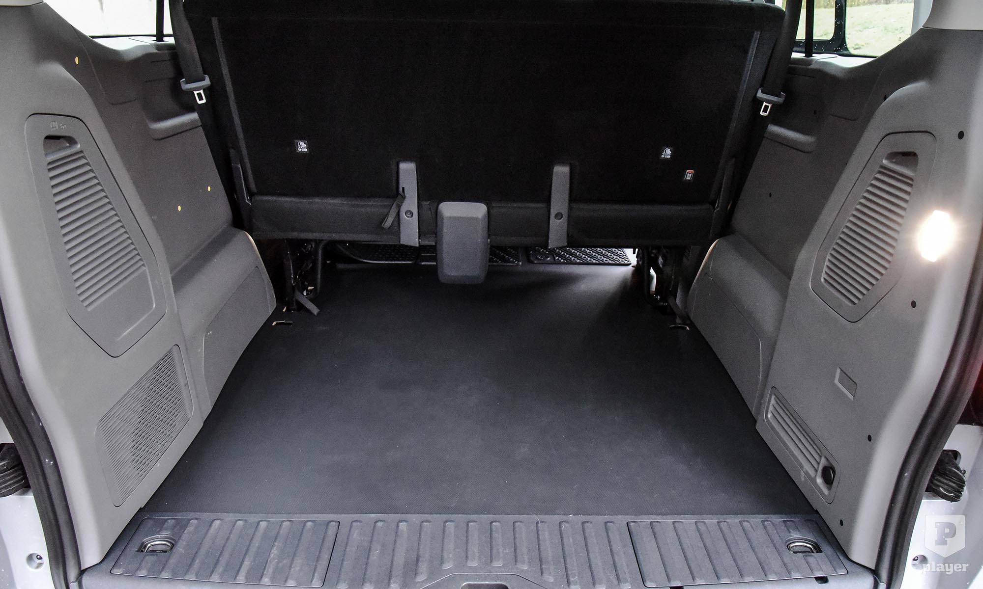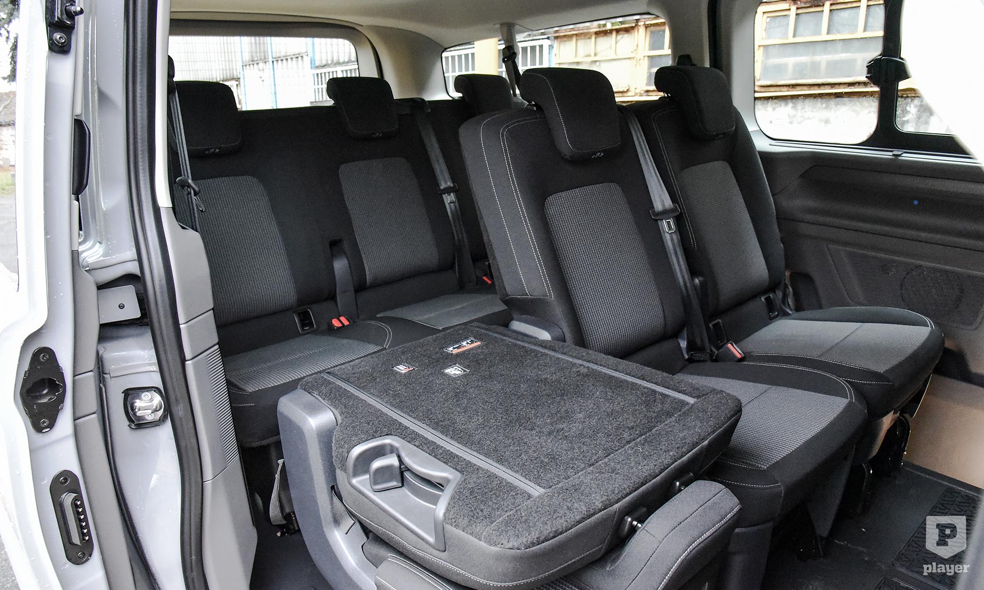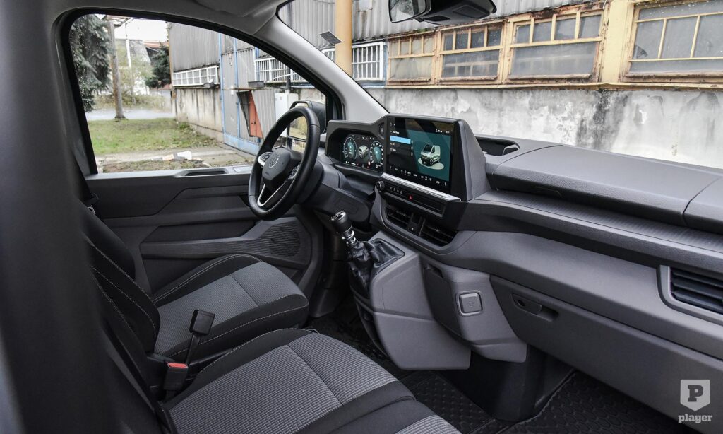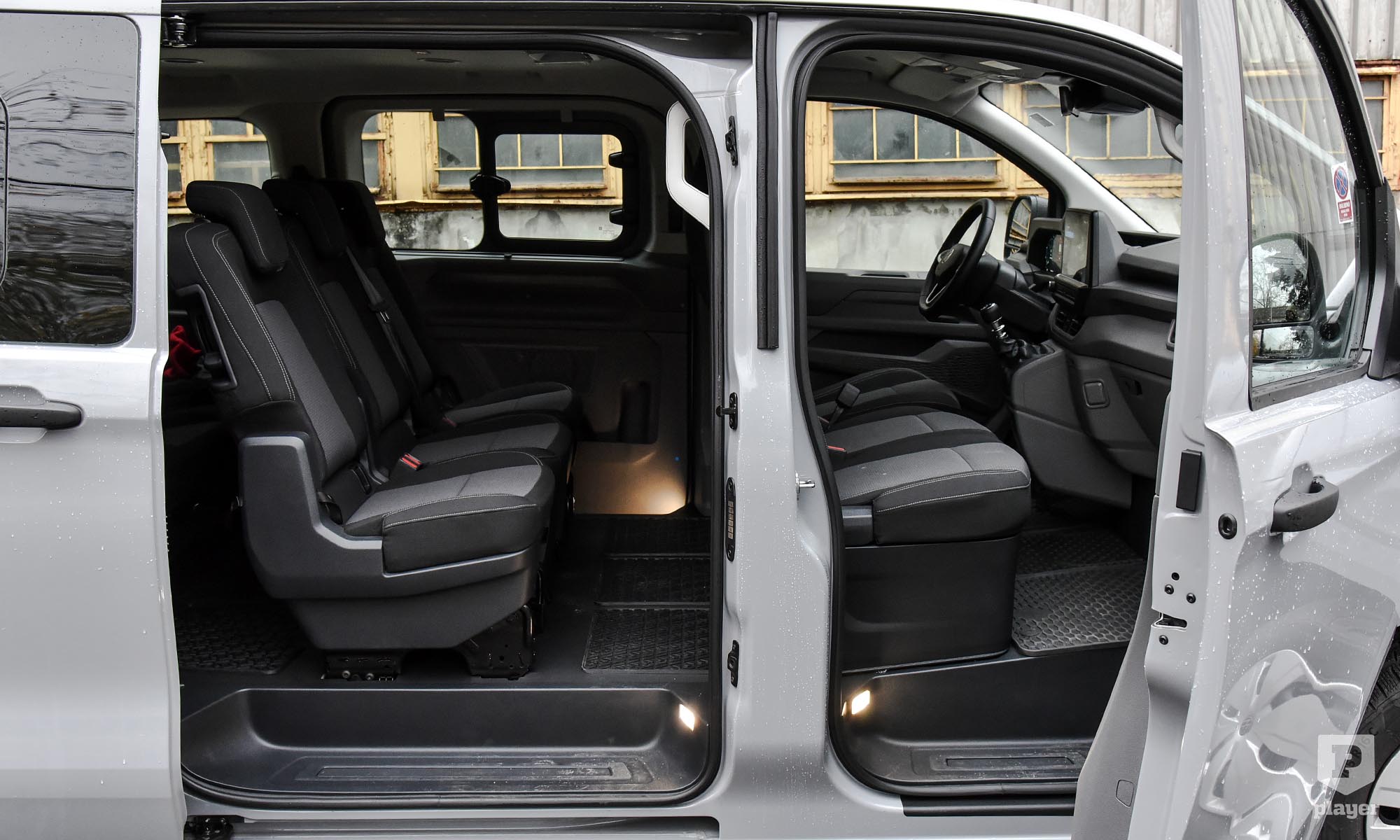A vezető és az első utas(ok) hagyományos, a hátsók tolóajtón szállnak be, ahogy ez ebben a műfajban szokásos és praktikus. Nem jut mindenkinek önálló ülés, mert a harmadik sorban pad van, de még ott is minden irányban elegendő a hely, inkább a kevésbé formázott üléstámla csökkenti valamelyest a komfortot. Rengeteg rakodóhelyet találunk, főleg a vezető körül, ez is utal a haszonjárműves alapokra.