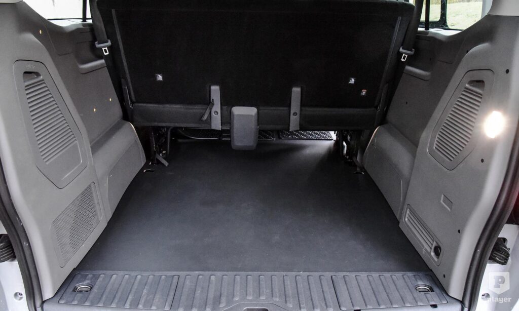 A nagyobb tengelytávú Caravelle – mint a tesztautó – teljes létszám mellett is képes még kb. 1,7 köbméter holmit elvinni, ha pedig kiszedjük a két hátsó üléssort, közel öt köbméteres űrt tölthetünk meg. Ami ide nem fér be, az egy garzonba se fog.