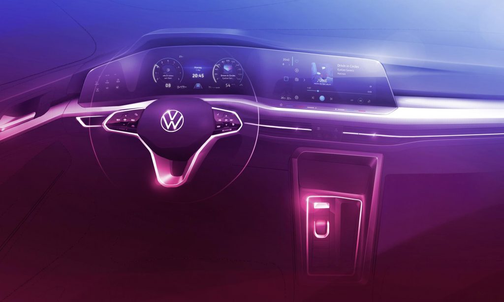 A belső térben nagyobb újdonságokra számíthatunk. A kormánykerék mögött még nagyobb méretű képernyő vetíti a műszereket, és jobbra ennek folytatása lesz a hasonlóan méretes, magasra tett érintőképernyő. A Golfban a kormánykeréken kívül alig lesznek hagyományos értelemben vett kapcsolók, és a váltókar is jóval kisebb lesz a jelenleginél.
