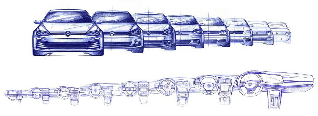 Két hét múlva, október 24-én mutatja be a Volkswagen az egyik legfontosabb újdonságát, a nyolcas Golfot. A kompakt modell prototípusát álcázva már megmutatták, de abból csak az derült ki, hogy a jellegzetes alakját megtartja az autó. Most a dizájnerek rajzait láthatjuk, amiből már jobb képet kaphatunk arról, milyen is lesz a következő Golf.