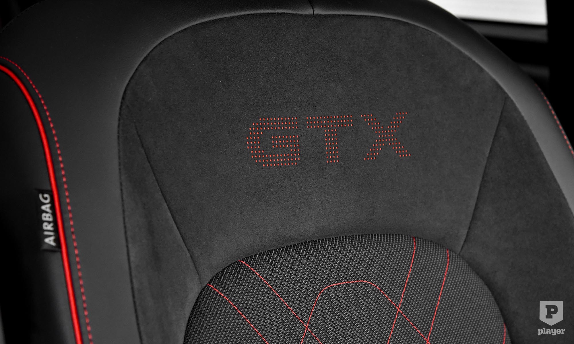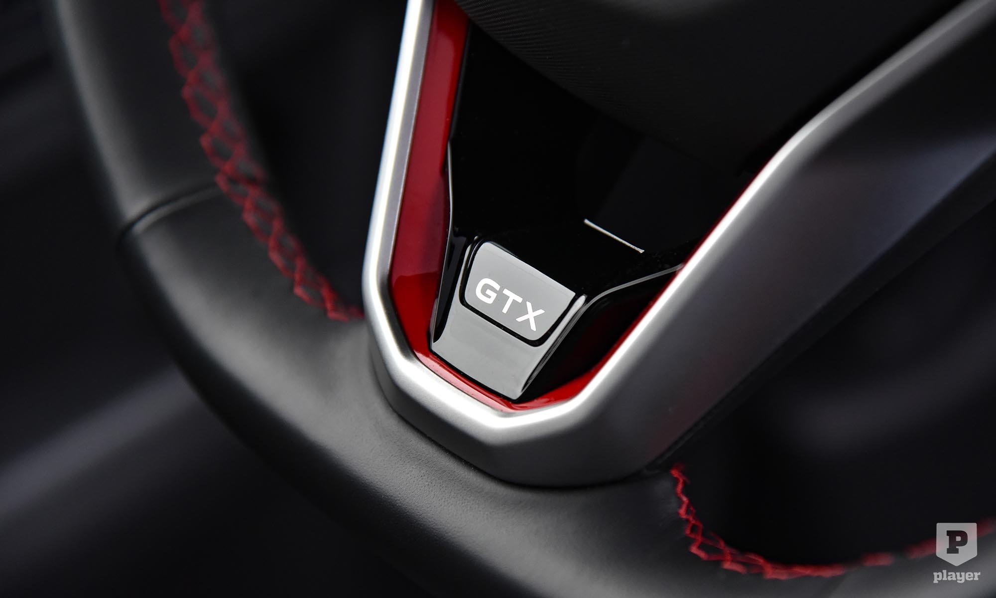 Jobban megnézve észrevesszük, hogy a GTX-en más a lökhárító, a légbeömlők méhsejtmintásak, és ezek a menő 21 colos könnyűfém kerekek is csak ehhez a kivitelhez járnak. Sok helyen van GTX emblémája, mégis, aki nem a típus rajongója, inkább csak egy szuper színű ID. Buzzt lát maga előtt, és ez nem is baj.