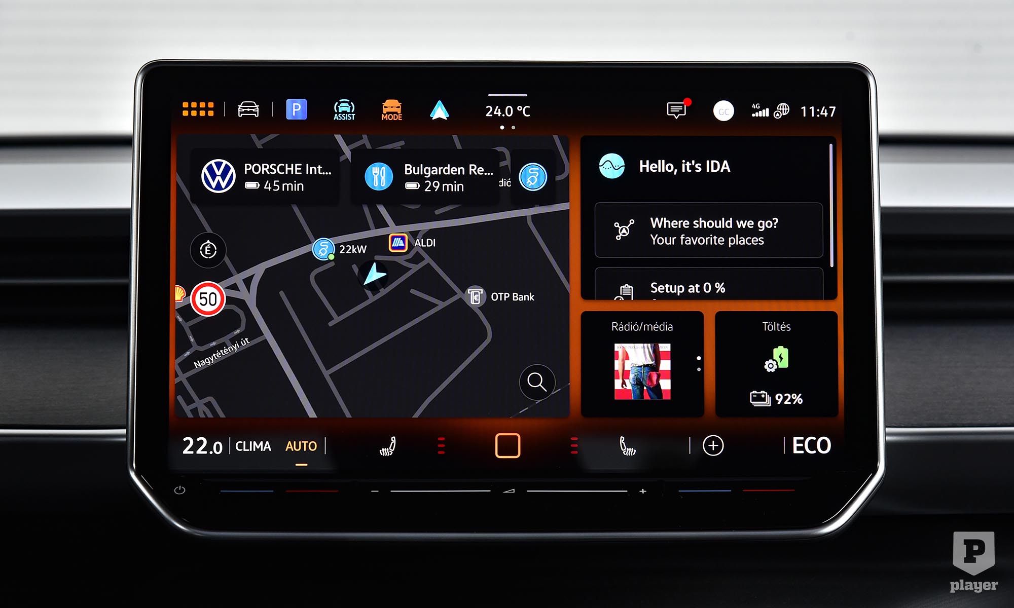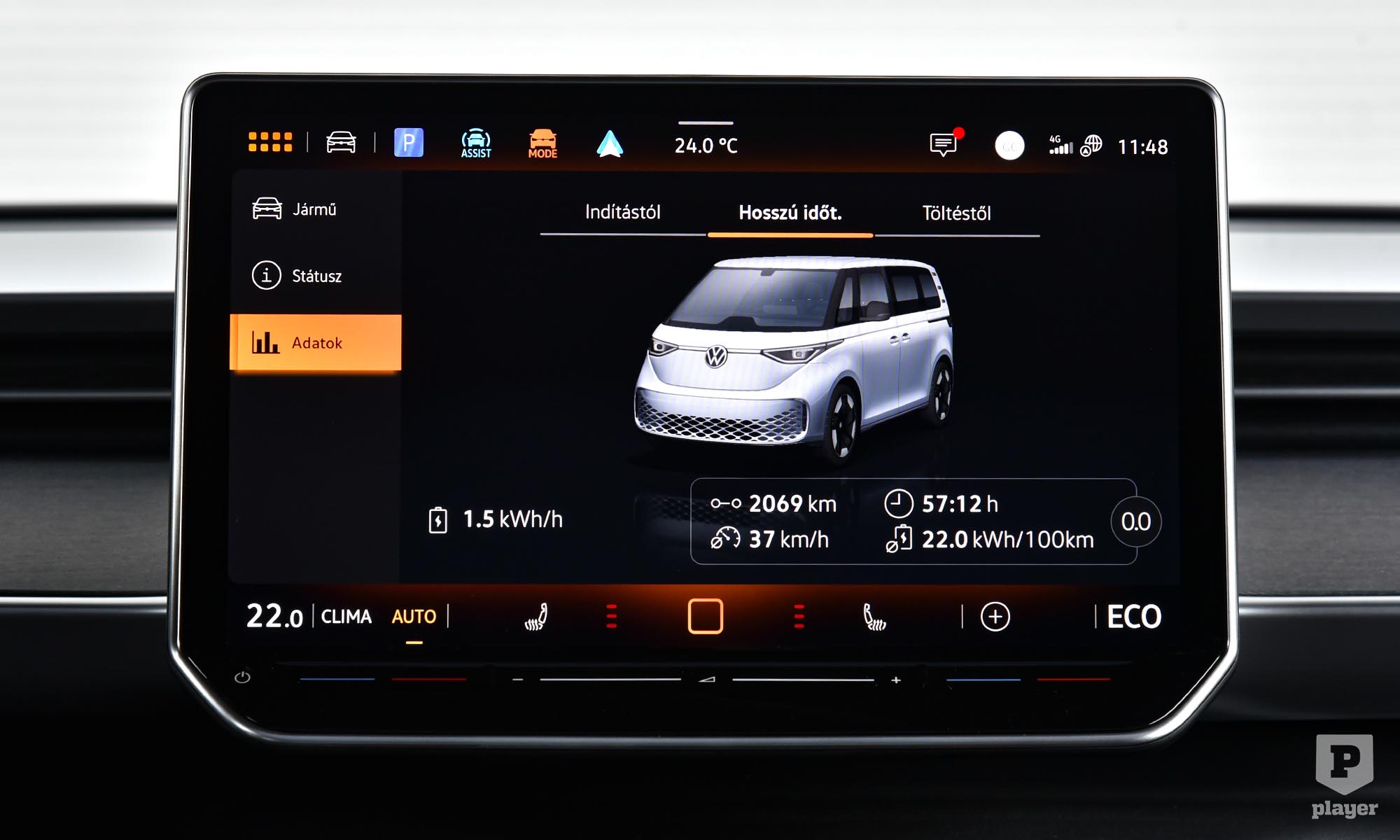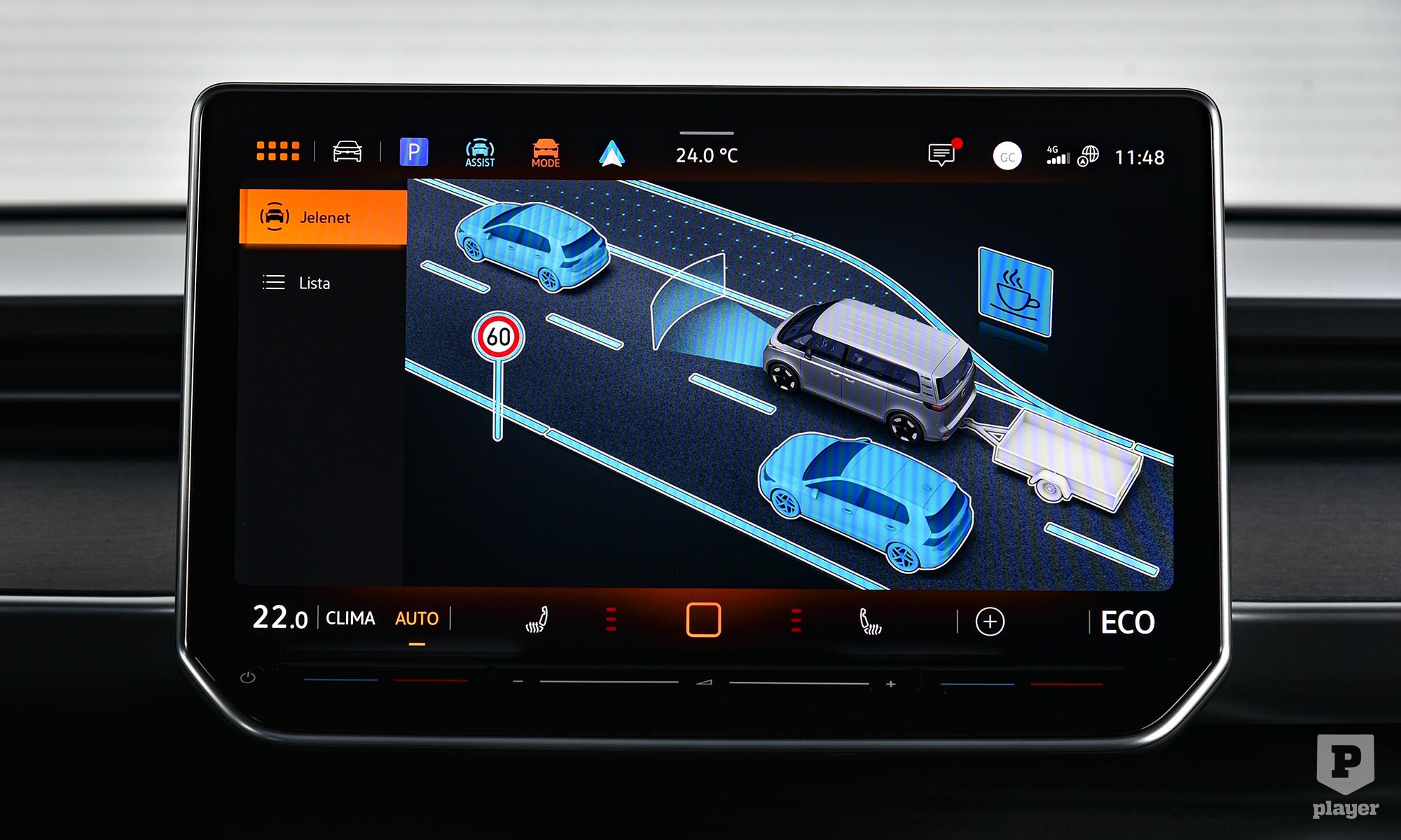 Látszik, hogy a Volkswagennél nem hanyagolják el az ID. Buzzt, a megjelenése óta több helyen javítottak rajta. Az érintőképernyőt például 12-ről 12,9 colosra cserélték, és a legújabb rendszer fut rajta, amelyen mindig elérhetők a klíma kezelésére szolgáló kapcsolók, fentre pedig gyorsgombok kerültek a gyakran használt funkciókhoz. Persze maradtak bosszantó részletek, mint a kormány rettenetes érintőgombjai, vagy az, hogy lespórolták a hátsó ablakemelők kapcsolóit.