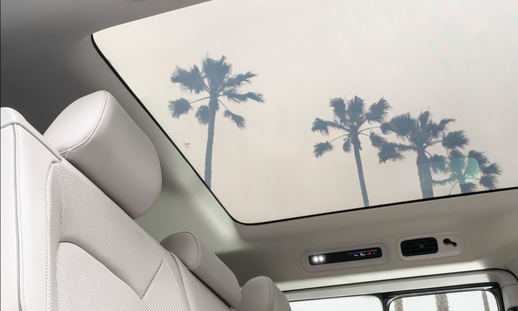 171 centiméter hosszú és 1,4 centiméter széles üvegtetőn át árad a napfény az utastérbe.