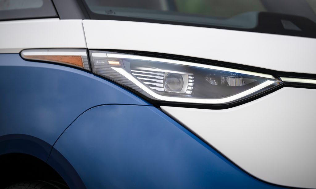 Formája ellenére az ID. Buzz hosszú tengelytávú változatának légellenállási együtthatója 0,29. Ez kiemelkedően jó értéknek számít a kategóriában, de arról nem érdemes megfeledkezni, hogy a homlokfelület ettől még nem zsugorodott össze. Az amerikai ID. Buzzok orrán világító embléma van, a LED-es fényszórójuk sarkában pedig narancssárga fények világítanak.