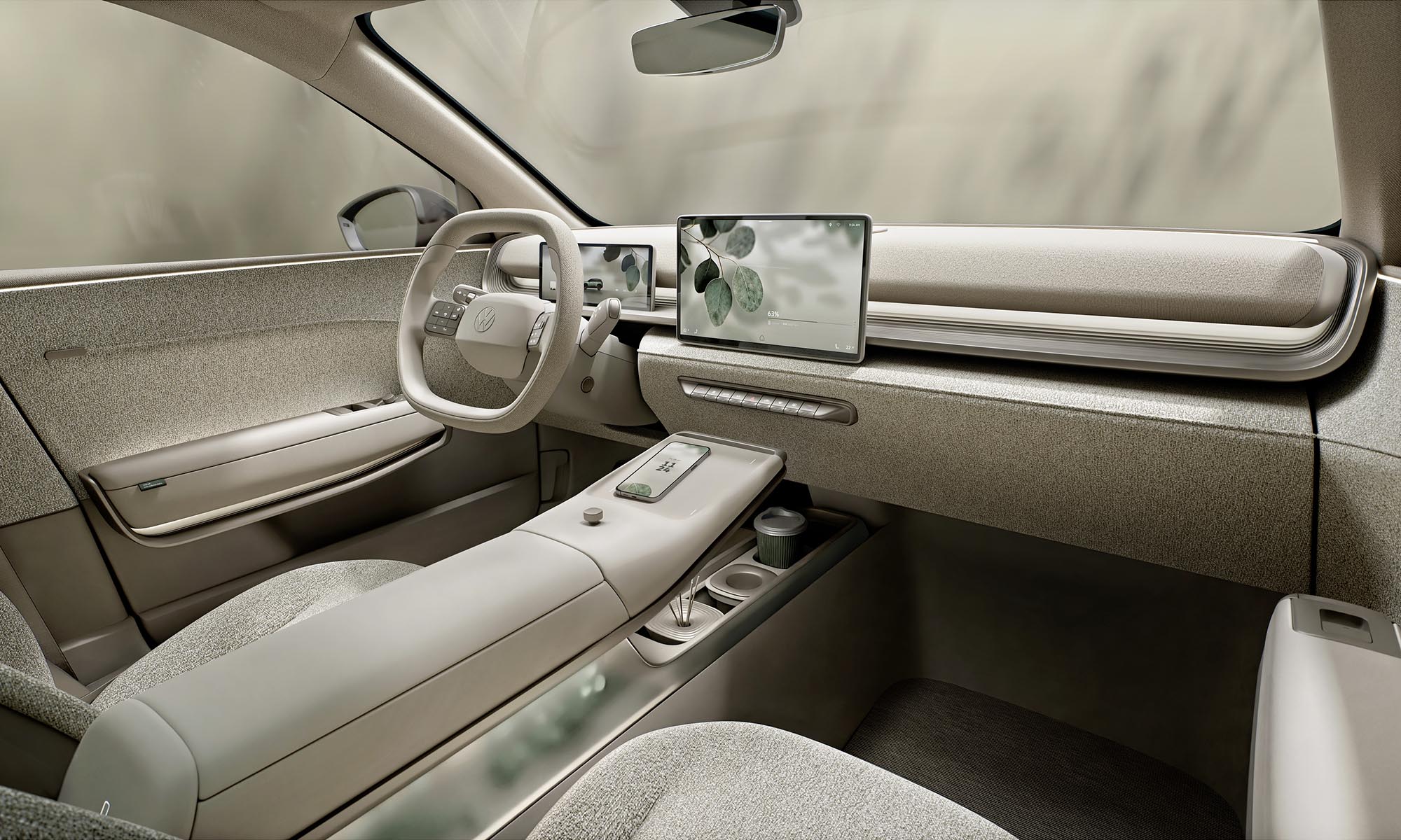 Belső tere hasonlóan letisztult, minimalista stílusú, mint a karosszériája, ráadásul a berendezése állítólag szinte változtatás nélkül kerül majd sorozatgyártásba. A műszereket 11 colos kijelző vetíti, középre 13 colos érintőképernyő került, és